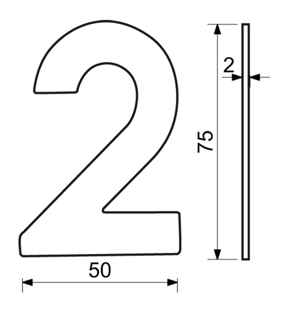 Az elegáns, 75 mm magas 2-es házszám minőségi rozsdamentes acélból készül, modern, matt fekete felülettel. Lapos 2D kialakításának köszönhetően jól illeszkedik a homlokzathoz, és az utcáról is jól olvasható.