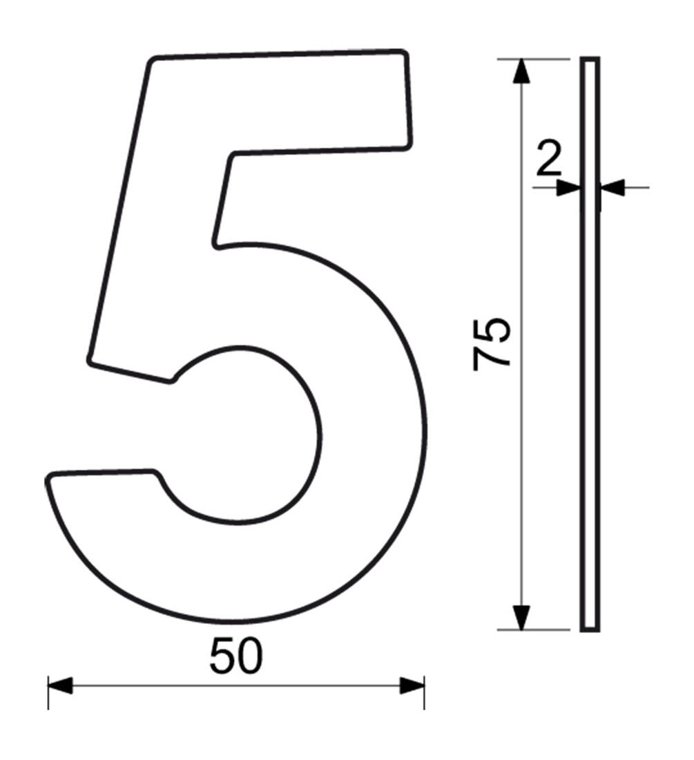 Elegáns házszám 5 75 mm magassággal, rozsdamentes acélból, matt fekete kivitelben. Egyszerű ragasztásos szerelés a mellékelt 3M kétoldalas ragasztószalaggal. Alkalmas simára és közepesen érdes felületekre, tartós és stílusos megoldás a ház egyértelmű jelöléséhez.