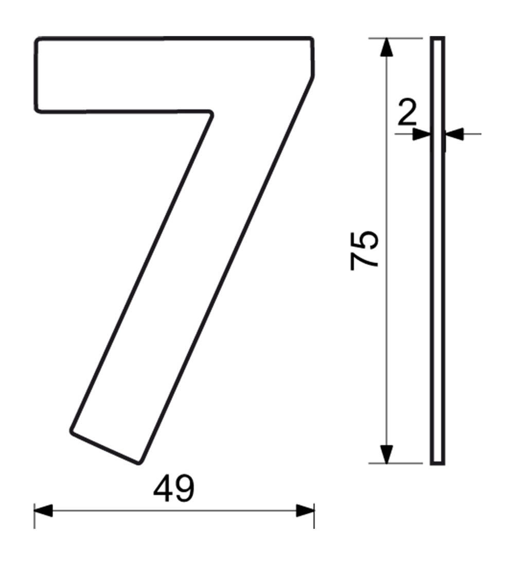 A dizájnos, matt fekete rozsdamentes acél 7-es házszám remekül illik a modern homlokzatokhoz és bejárati terekhez. A lapos 2D kivitel letisztult, elegáns hatást kelt, és ellenáll az időjárási hatásoknak.