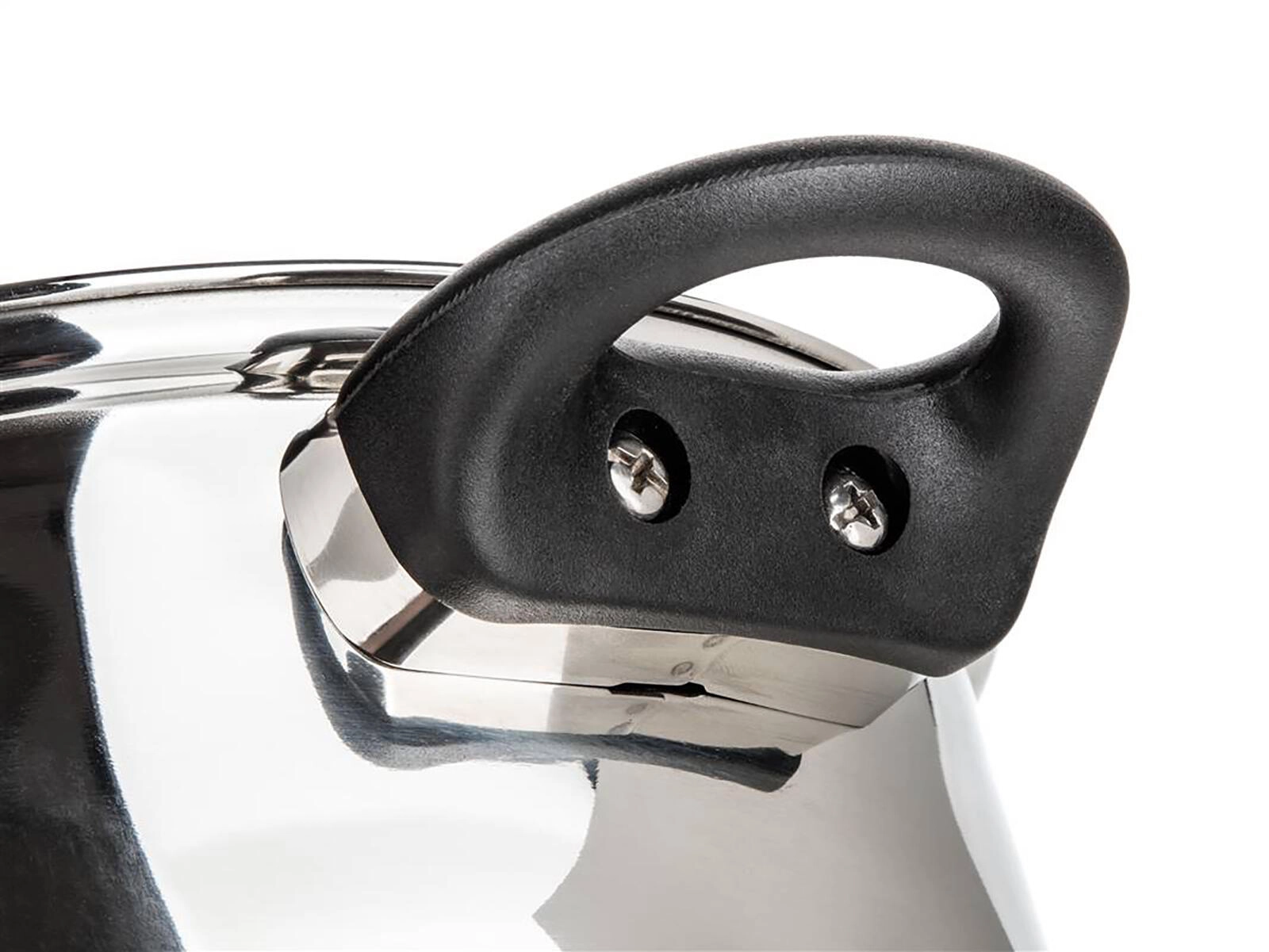 Az ergonomikus bakelit fogantyúk és a gomb hűvösebbek maradnak érintésre, megkönnyítve a mozgatást és a kezelést.