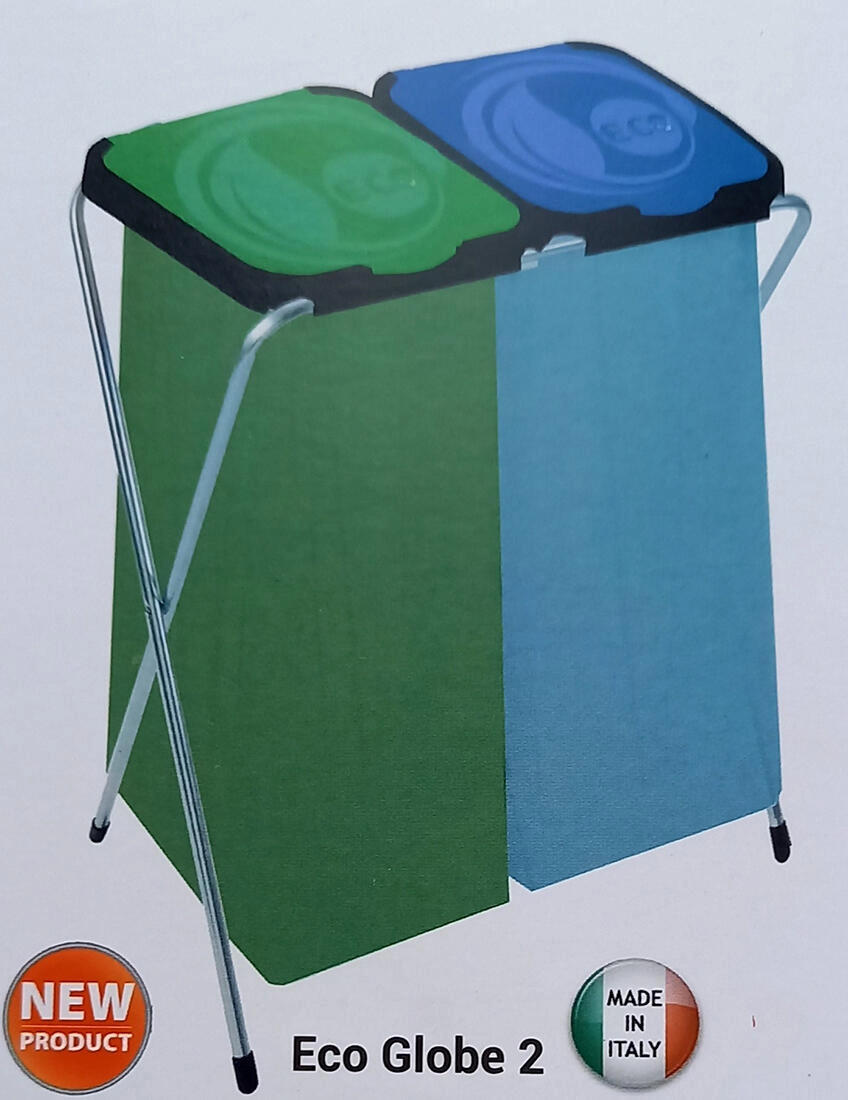 Az ECO-GLOBE 2 szelektív hulladékgyűjtő állvány ideális megoldás a hulladék rendszeres válogatására. A dupla elrendezés lehetővé teszi például a műanyag és a papír szétválasztását, illetve a vegyes hulladék elkülönítését az újrahasznosítható anyagoktól. Átgondolt 66 × 42 × 81 cm méreteinek köszönhetően konyhákba, háztartási helyiségekbe és irodai sarkokba is könnyen beilleszthető.