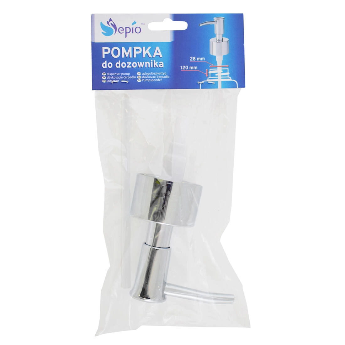 Praktikus univerzális pótadagoló pumpa szappan- és testápoló adagolókhoz, könnyen rácsavarható a tartályra. A szabványos 28 mm-es menettel és a hosszú szívócsővel ideális a legtöbb hétköznapi palackhoz. Tartós kivitel krómozott megjelenéssel, amely modern stílust kölcsönöz fürdőszobájának, és kényelmes, kontrollált adagolást biztosít.