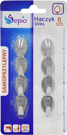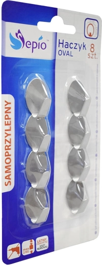 Öntapadós ovális rozsdamentes acél akasztók, kicsi, 8 db