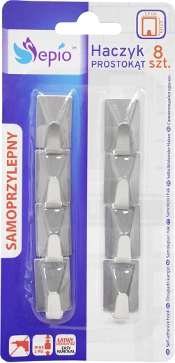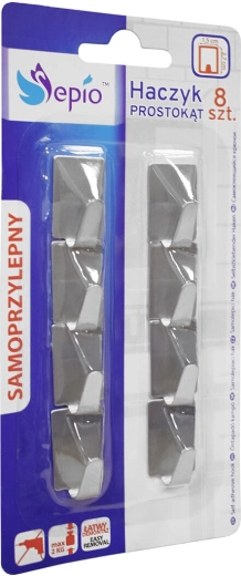 Praktikus, 8 darabos készlet öntapadós, rozsdamentes acél akasztókkal fürdőszobába, konyhába és előszobába. A kétoldalas ragasztószalagnak köszönhetően a szerelés gyors és fúrásmentes, így nem sérülnek a csempék és a falak. Az akasztók páratűrők, elegáns, szögletes dizájnnal készülnek, és akár 2 kg-ot is elbírnak.