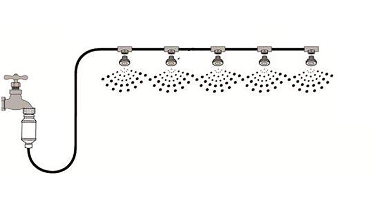 A csomag tartalmaz függesztő klipszeket a rendezett telepítéshez és csapadaptert szűrővel. A permetezés alkalmas az üvegházak páratartalmának növelésére vagy állatok elhelyezésére szolgáló terekbe is. A legjobb eredmény érdekében ügyeljen a megfelelő víznyomásra, és úgy irányítsa a ködöt, hogy ne essen közvetlenül személyekre, csúszós felületekre vagy érzékeny tárgyakra.