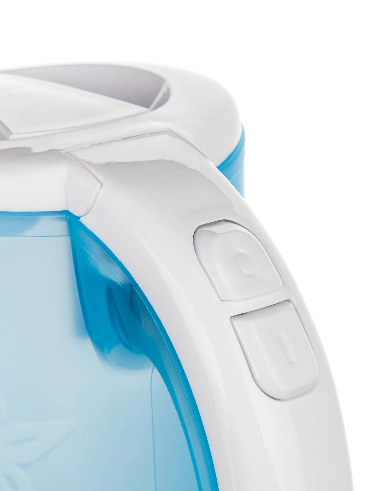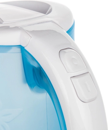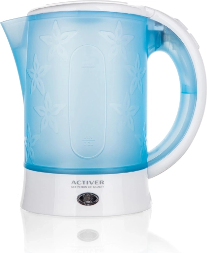 Ez az utazó vízforraló a kompakt méretet praktikus funkciókkal ötvözi, hogy útközben is kényelmesen készíthessen forró italokat. A 550–650 W teljesítménynek köszönhetően a víz gyorsan és takarékosan felmelegszik, a félig átlátszó kék–fehér ház virágmintás dekorral pedig megkönnyíti a vízszint ellenőrzését.