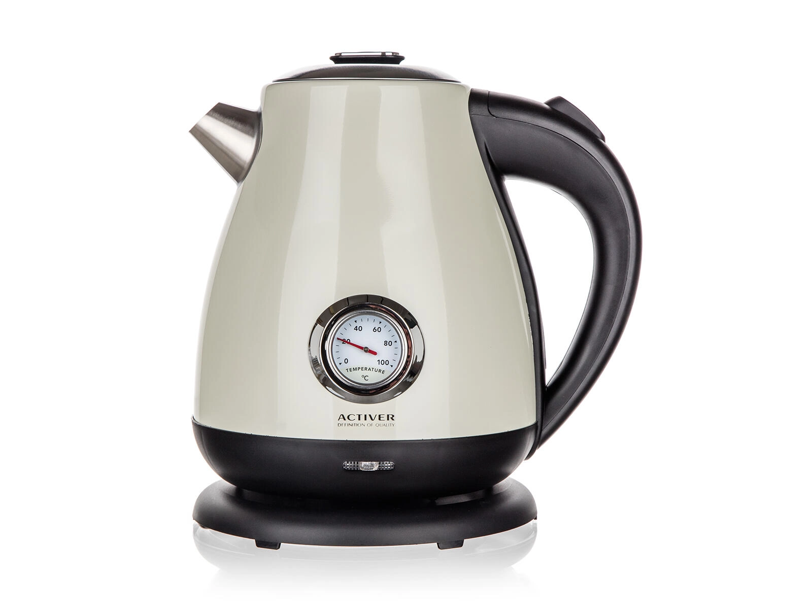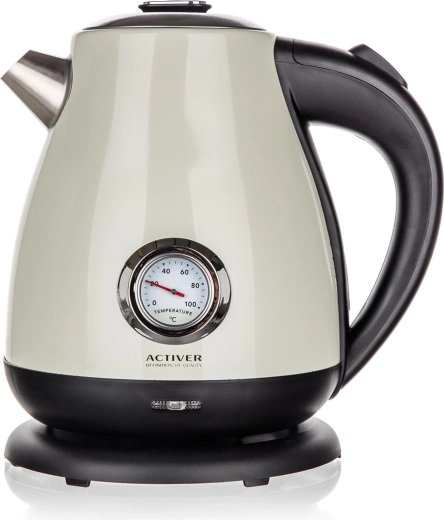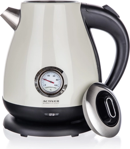 Az elegáns EBBA vízforraló duplafalú rozsdamentes acél házzal, fekete–fehér színben megbízható segítőtárs minden konyhában. A 1850–2200 W teljesítménynek köszönhetően a vizet pillanatok alatt felmelegíti, a beépített analóg hőmérő pedig lehetővé teszi a hőmérséklet követését teához, kávéhoz vagy más italokhoz.