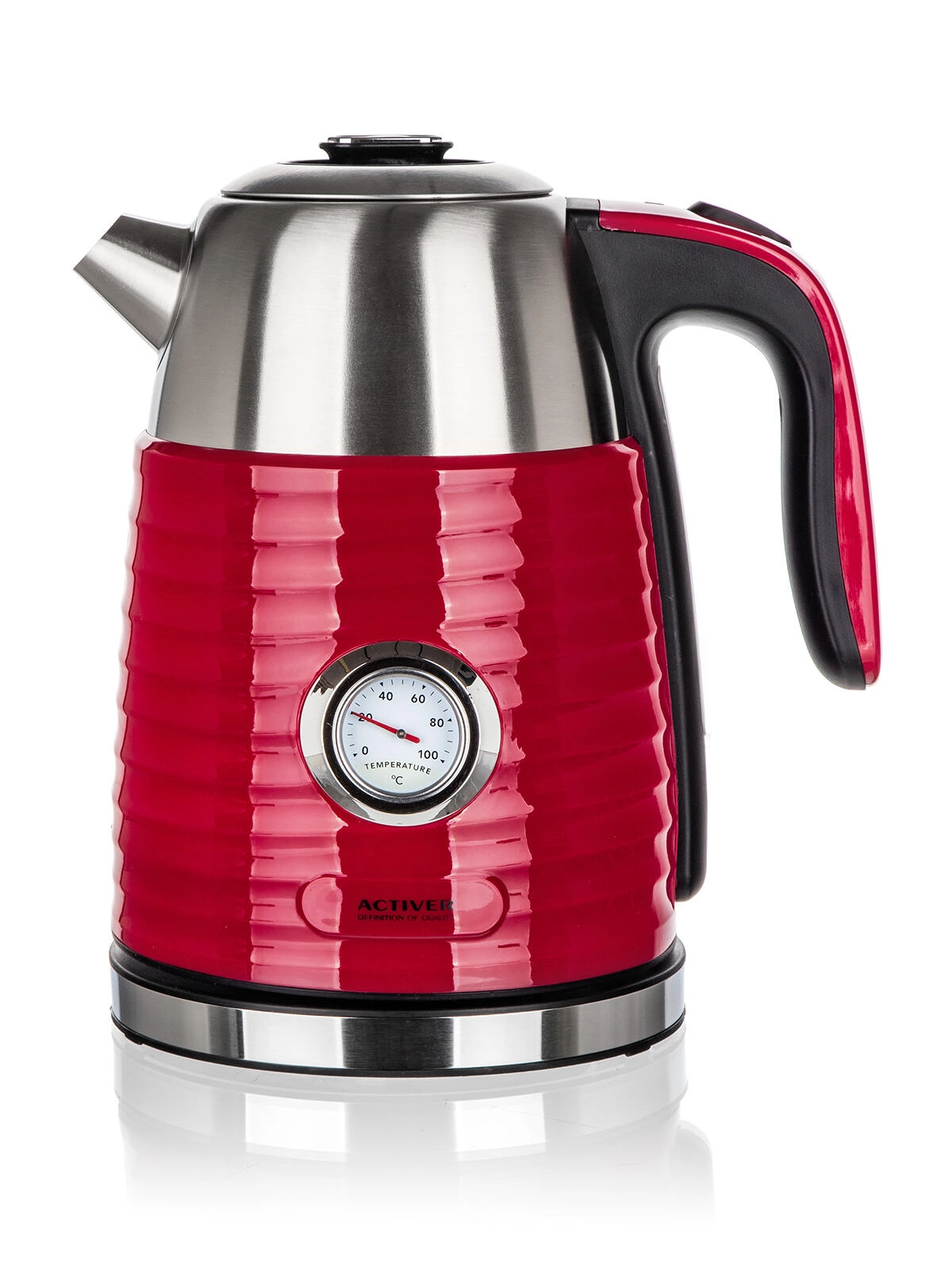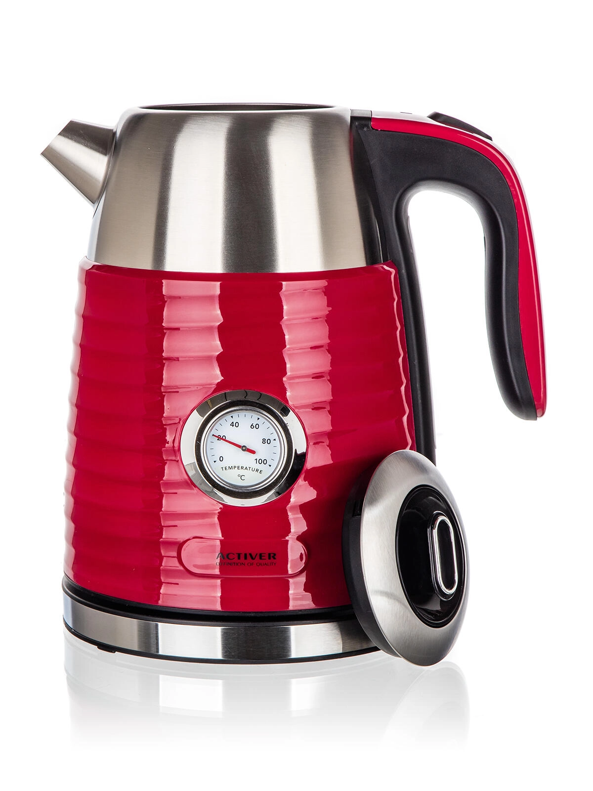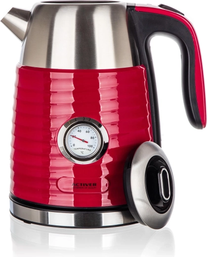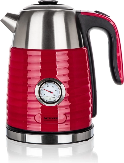 A JUMPER gyorsforraló 1,7 l űrtartalommal elegáns piros kivitelét praktikus rozsdamentes belsővel ötvözi. A duplafalú kialakítás csökkenti a véletlen érintésből adódó égés kockázatát, és hatékonyabban tartja melegen a vizet fokozatos felszolgáláshoz. A beépített analóg hőmérő lehetővé teszi a vízhőmérséklet pontos követését – ideális finom teák, kávé vagy instant italok készítéséhez.
