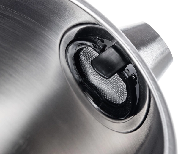 A vízforraló 1850–2200 W teljesítményt kínál a gyors forraláshoz, sík aljjal az egyszerű tisztításért és középső csatlakozós talppal a kényelmes, bármely irányból történő 360°-os felhelyezéshez. Az automatikus és kézi kikapcsolás valamint a túlmelegedés elleni védelem növeli a biztonságot a mindennapi használat során. A beépített szűrő felfogja a nagyobb szennyeződéseket, és segíti a tiszta, lerakódásmentes kiöntést.