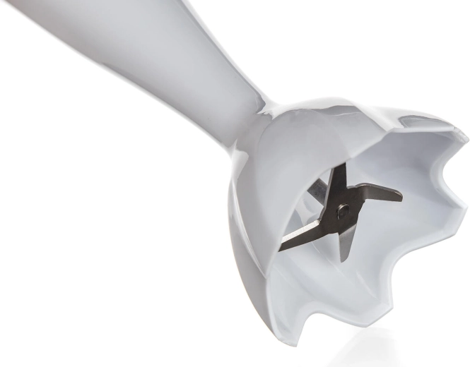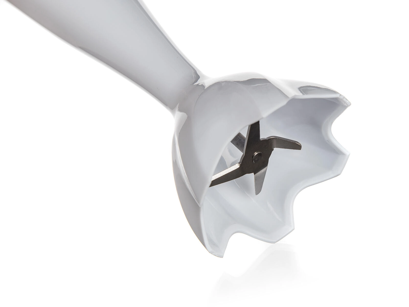 A formázott keverőfej védőharanggal csökkenti a fröccsenést, és védi az edény felületét turmixolás közben.