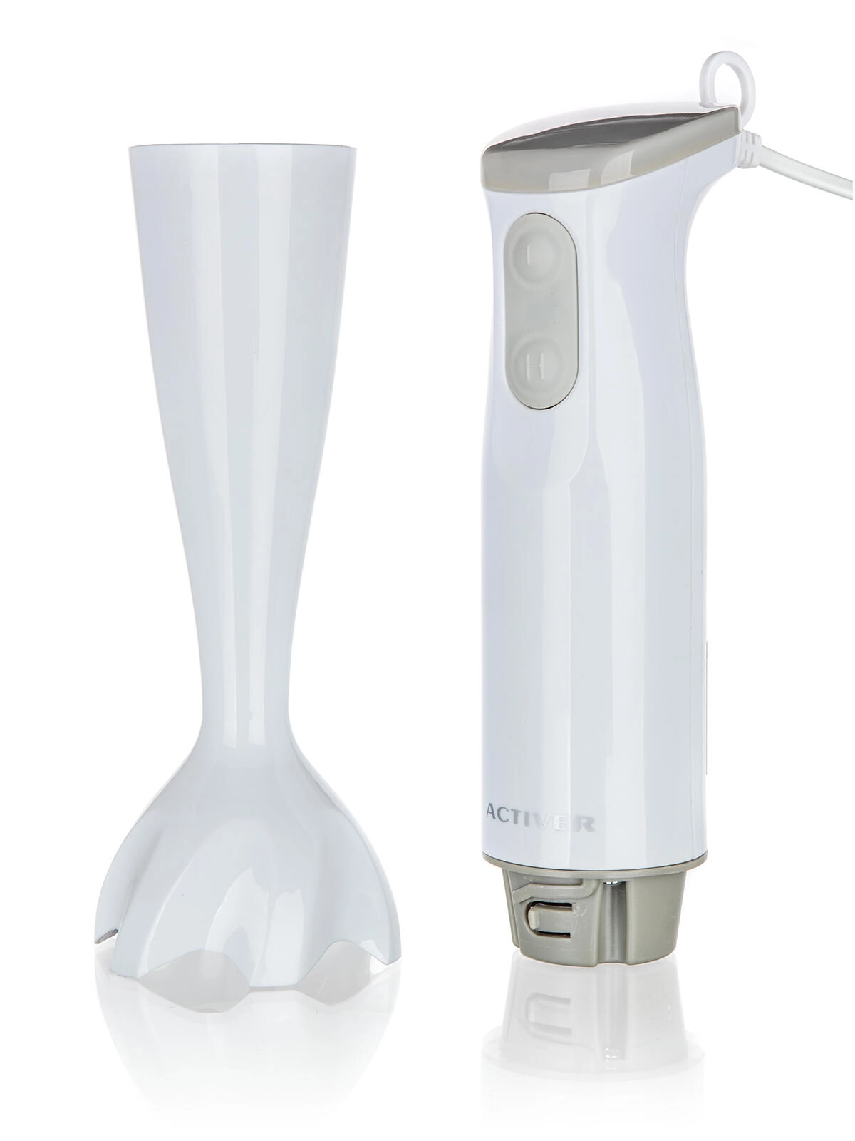 Ez a műanyag botmixer ideális választás a mindennapi konyhai feladatokhoz. A erős, 350 W-os motornak és a kétsebességes beállításnak köszönhetően könnyedén készíthet krémleveseket, selymes mártásokat és tápláló püréket a gyerekeknek. Kis tömege és ergonomikus formája kényelmes használatot biztosít még hosszabb ideig tartó munka esetén is.