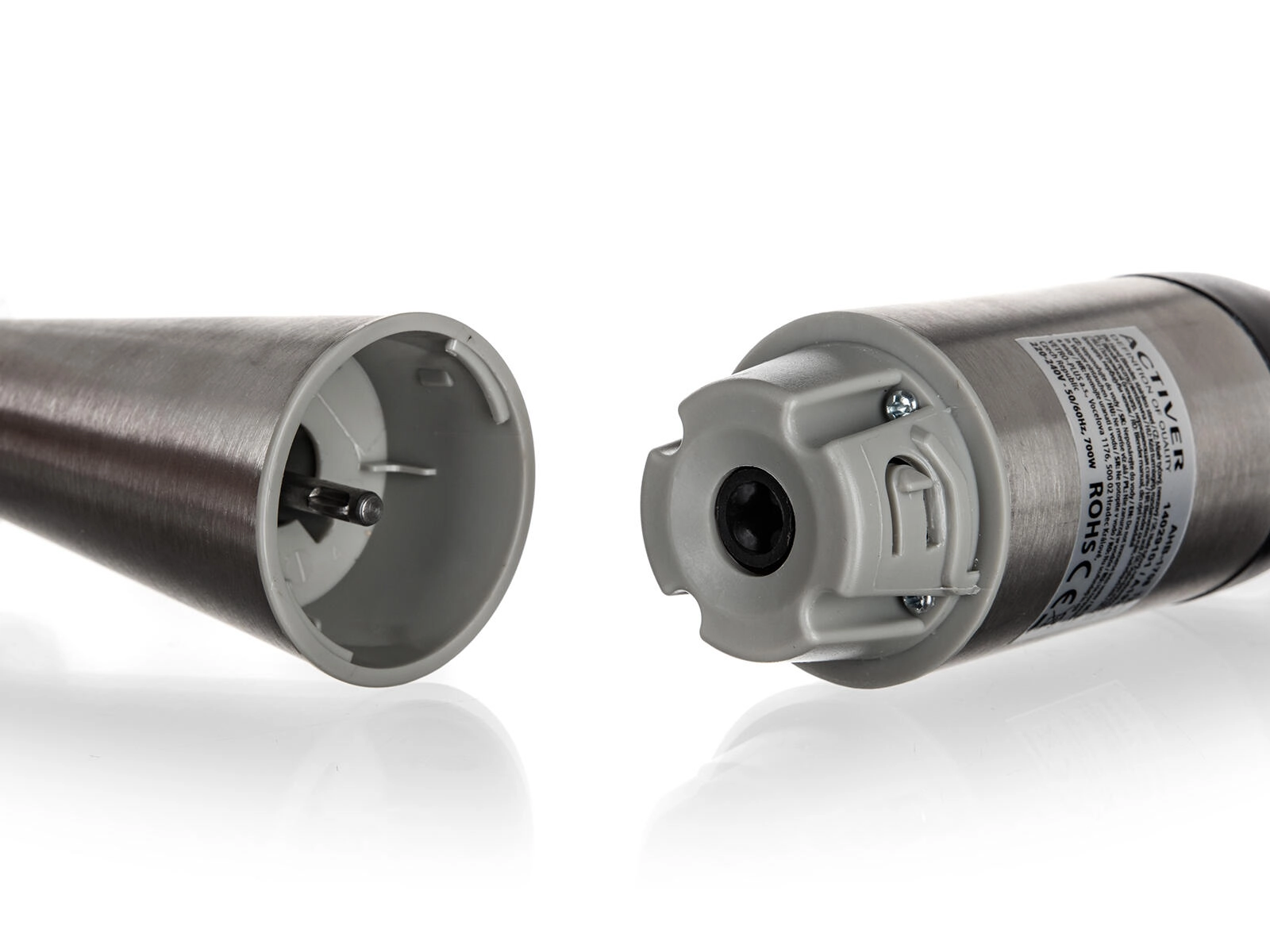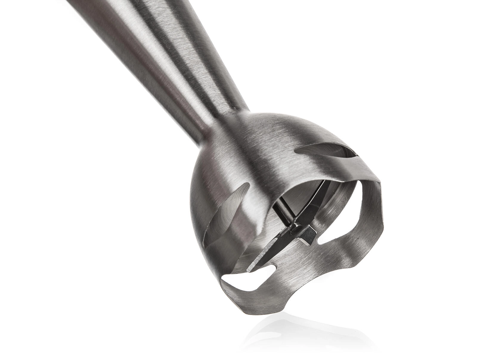 A megbízható, 700 W teljesítményű botmixer megbirkózik a krémlevesekkel, szószokkal és a házi bébiételekkel. A rozsdamentes merülőszár pengefedéllel csökkenti a fröcskölést, és közvetlenül a fazékban is használható. A levehető szárnak köszönhetően a karbantartás gyors és egyszerű.