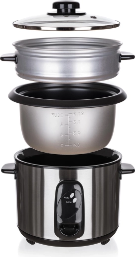 A csomag tartalmaz egy gőzölő tálat is, amellyel a zöldségek vagy a hal a rizzsel egy időben készülhetnek. Időt és energiát takarít meg, és tápanyagokban gazdag eredményt ér el hozzáadott zsiradék nélkül.