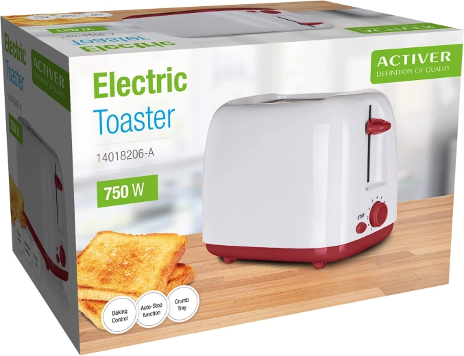 Kompakt kétszeletes kenyérpirító 650–750 W teljesítménnyel, 6 pirítási fokozattal, automatikus kikapcsolással, azonnali leállítás gombbal és kivehető morzsatálcával az egyszerű tisztításért. A stílusos fehér–bordó kivitel remekül kiegészíti konyháját.