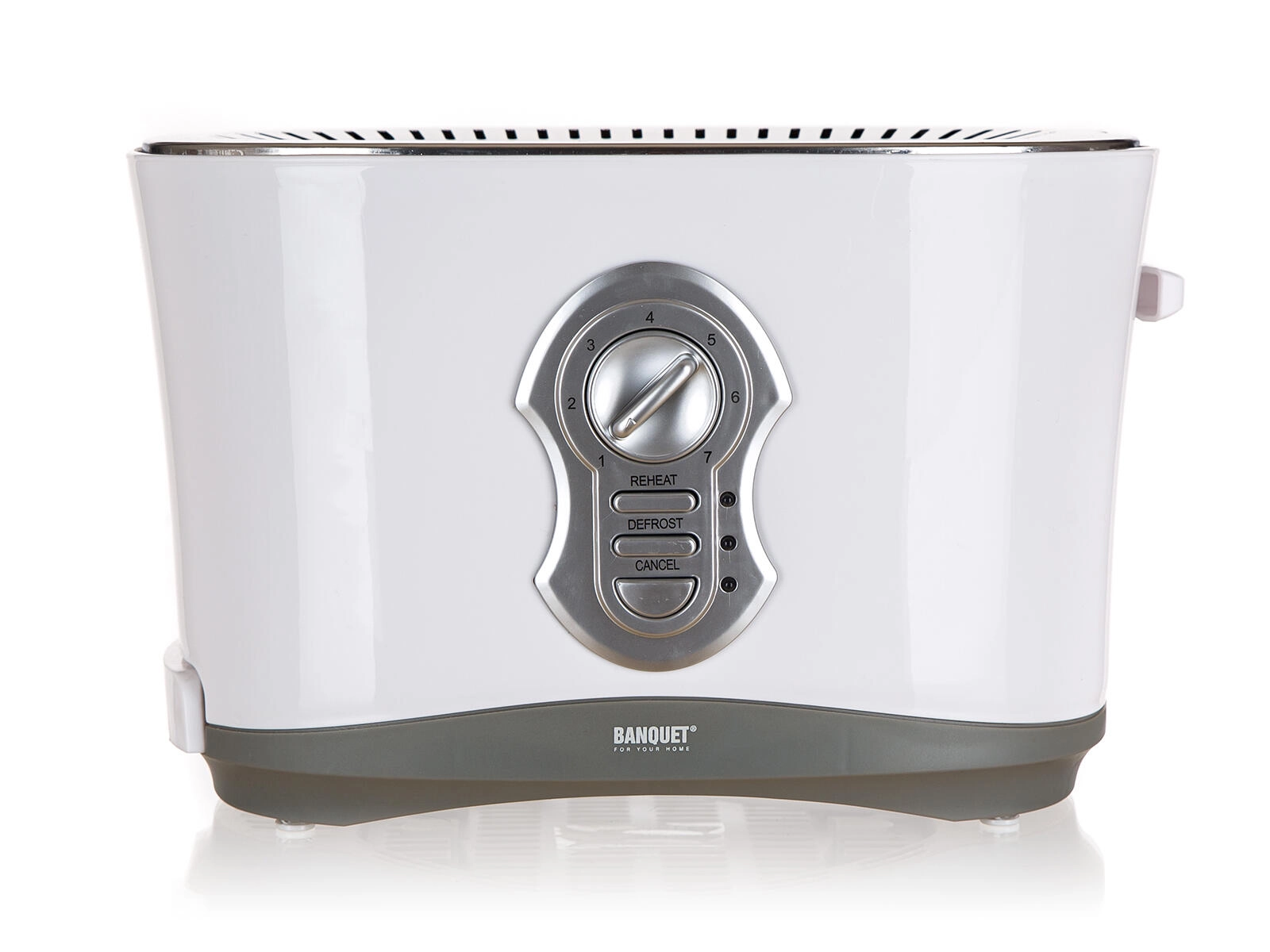 A praktikus Defrost (kiolvasztás) és Reheat (újramelegítés) funkciók tökéletes eredményt biztosítanak a fagyasztott pékárunál vagy korábban elkészített toastoknál is. A Cancel gomb azonnali ciklusmegszakítást tesz lehetővé, az automatikus kikapcsolás és a fényjelző pedig növeli a biztonságot és a kényelmet. A szeletközépre igazítás és a kihúzható morzsatálca megkönnyíti a mindennapi használatot és tisztítást.