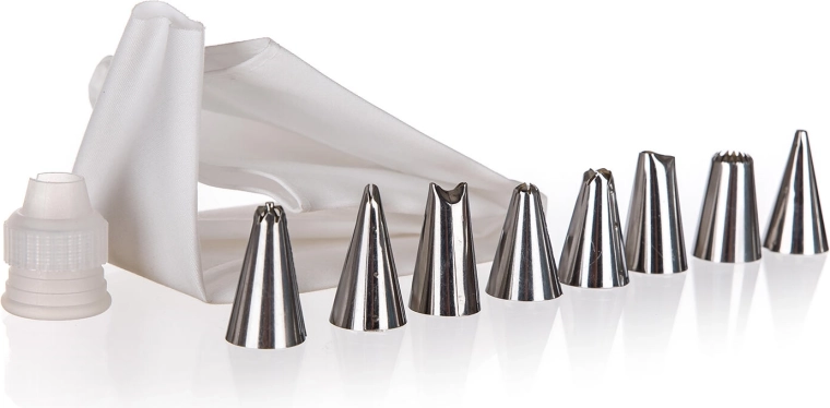 - 1× díszítőzsák, 1× csatlakozó, 8× rozsdamentes acél fúvóka