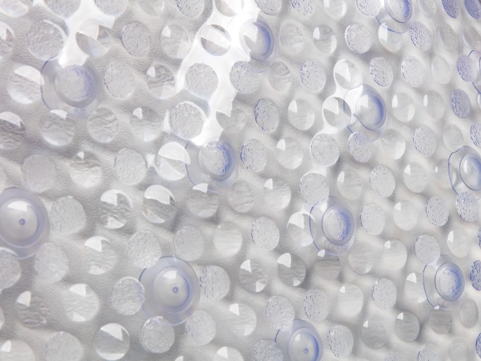 Tucatnyi masszív tapadókorong tartja az alátétet szilárdan a helyén, hogy zuhanyzás vagy fürdés közben se csússzon el.