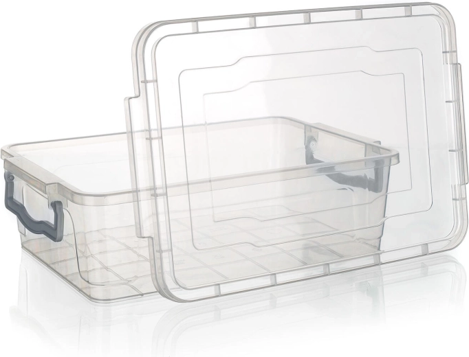 A 7 literes Gema tárolódoboz sokoldalú segítőtárs a mindennapi rendszerezéshez. Az átlátszó testnek köszönhetően gyorsan megtalálja, amire szüksége van, a szürke kapcsok pedig biztonságosan a helyén tartják a fedelet. A tartós műanyag megkönnyíti a karbantartást és hosszan tartó élettartamot biztosít rendszeres használat mellett is.