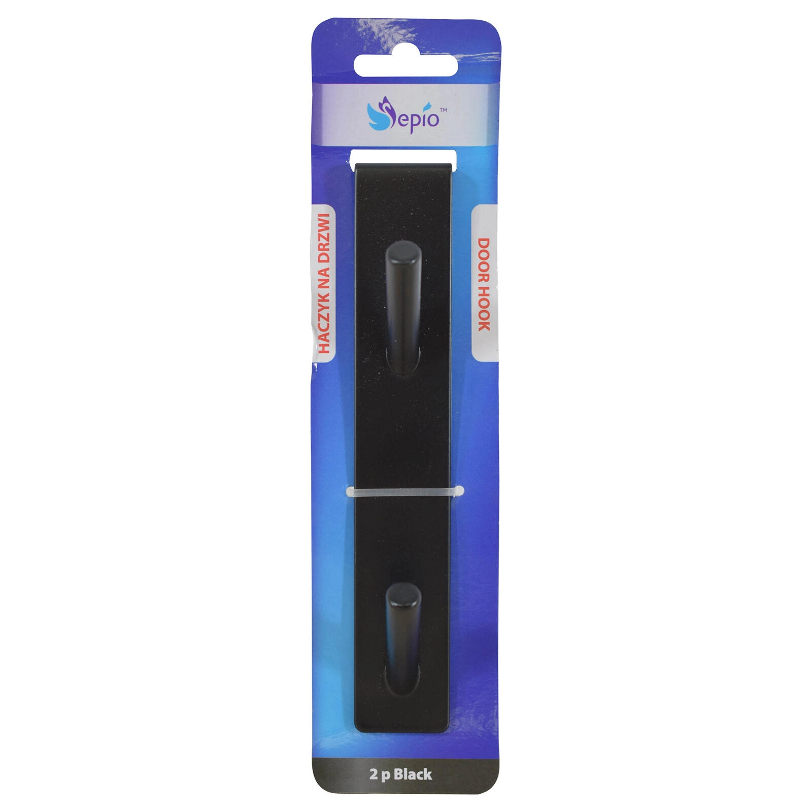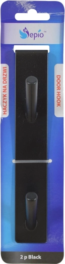 Ajtóra akasztható rozsdamentes acél akasztó 2 kampóval, fekete
