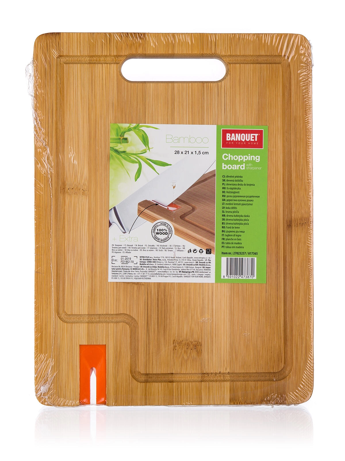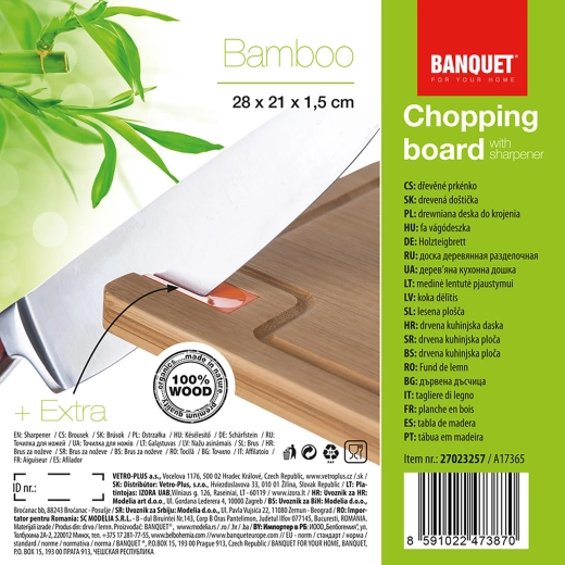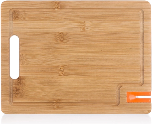 A tartós bambuszfa kíméletes a kések éléhez, nem veszi át úgy a szagokat, mint a hagyományos fa, és könnyen karbantartható. A beépített élező gyorsan visszaadja a konyhakések élességét, így mindig tiszta és precíz vágást érhet el.
