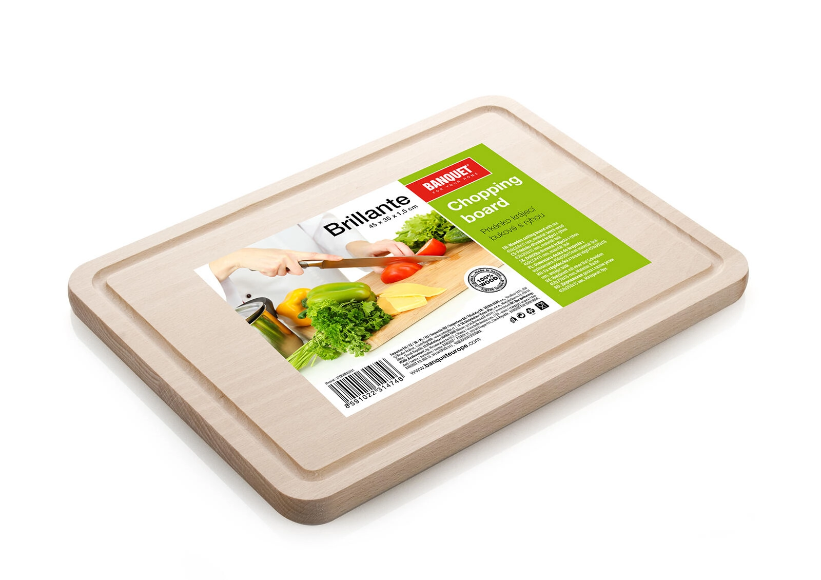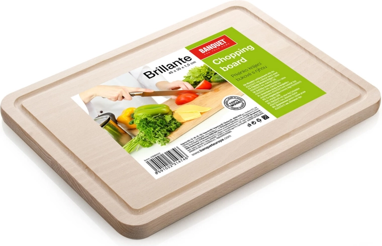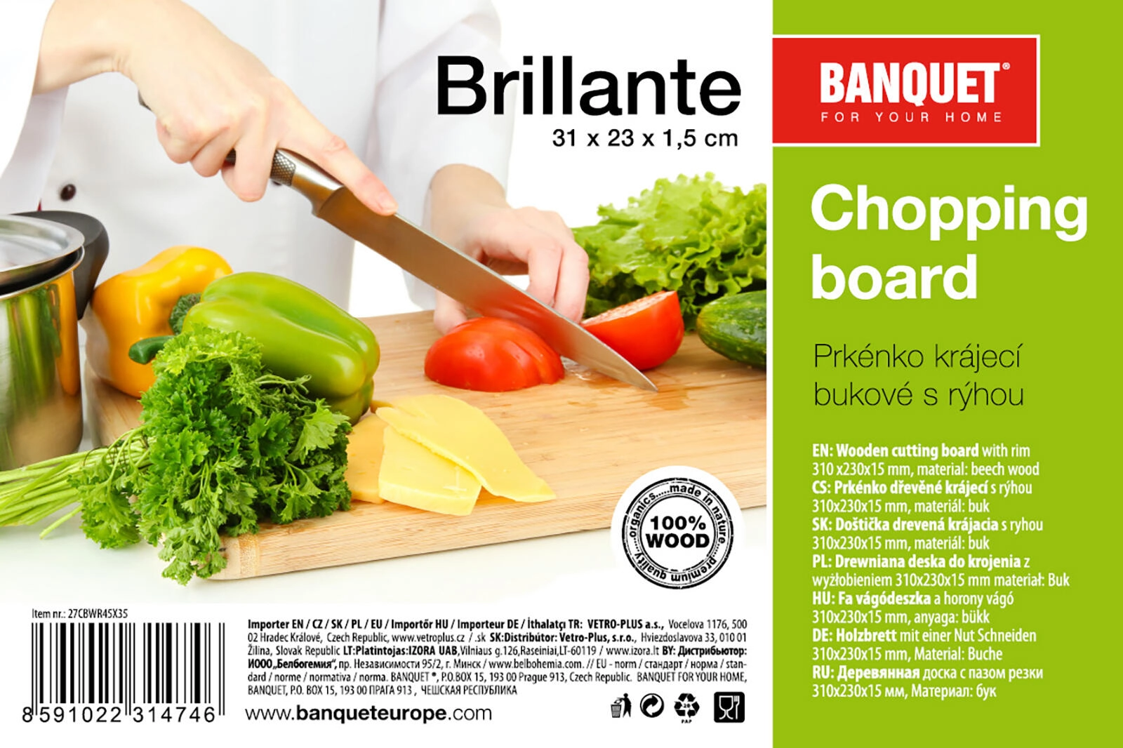 Fedezze fel a megbízható BRILLANTE vágódeszkát bükkfából, amely a perem menti vájatnak köszönhetően felfogja a húsból, gyümölcsből és zöldségből kifolyó leveket, így tisztán tartja a munkafelületet. A természetes natúr bükk tartósságot, hosszú élettartamot és elegáns megjelenést kölcsönöz bármely konyhának.