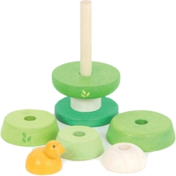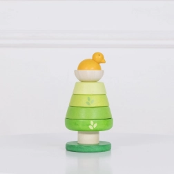 Fedezze fel a minőségi, fa rakosgató játékot fa formájában, aranyos madárkával a tetején. A különböző zöld árnyalatú elemek a színek és formák megkülönböztetésére ösztönzik a gyerekeket, míg a stabil talp biztonságos játékot biztosít. A rugalmas rúdnak köszönhetően az összerakás kényelmes és a legkisebb kezekhez is kíméletes.