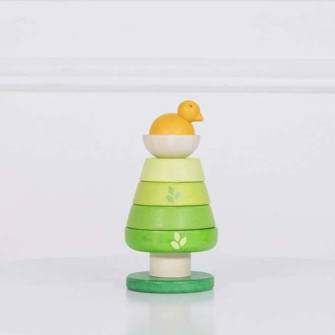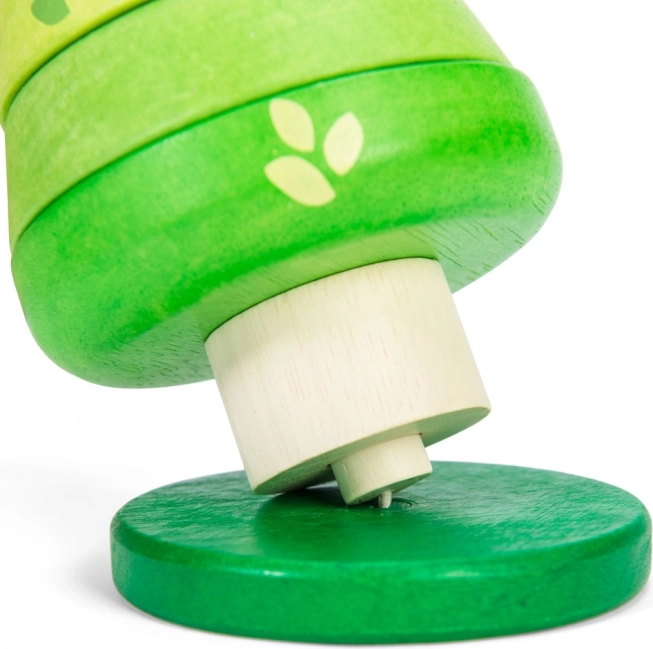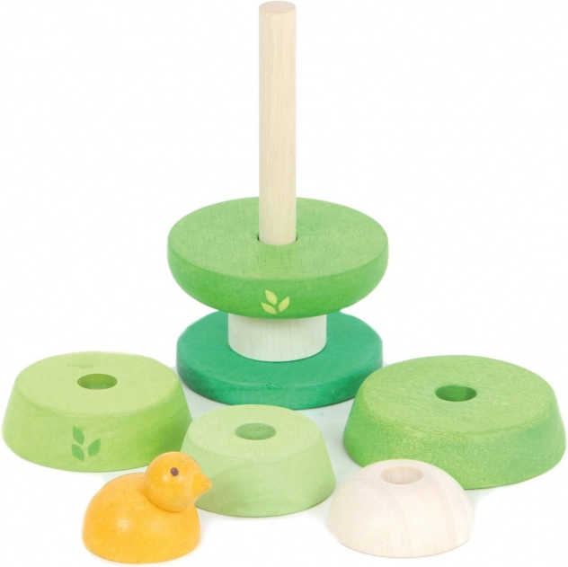 A bájos, fából készült fácska a LE TOY VAN Petilou kollekcióból ideális első rakosgató játék 12 hónapos kortól. A hat, zöld árnyalatú elem könnyen felhelyezhető a rugalmas középső rúdra, amelyet gumis rögzítés tart biztonságosan. A játék fenntartható fából készült, kézzel utófestett, vízbázisú, nem mérgező festékekkel, és támogatja a finommotorikát, a kéz–szem koordinációt, valamint a kognitív készségeket.