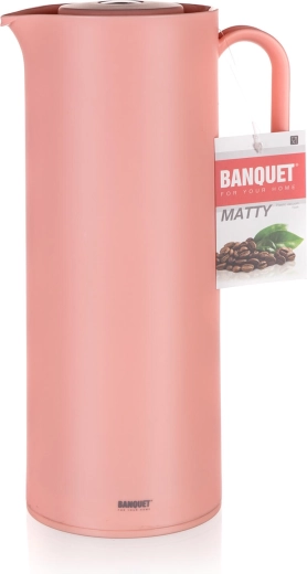 A stílusos, rózsaszín BANQUET Matty 1 l termosz a italokat sokáig melegen vagy hidegen tartja. Üveg termoizolációs betéttel, tartós műanyag testtel és praktikus fedéllel rendelkezik a kényelmes, csorgásmentes kiöntéshez. Ideális irodába, otthonra és vendéglátáshoz is.