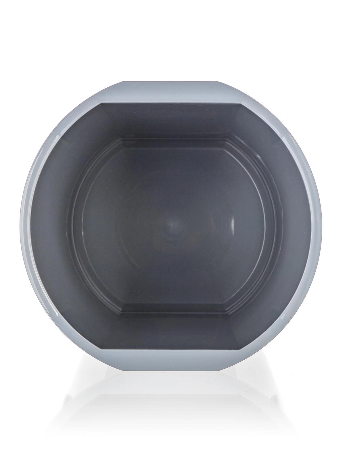 A kerek kialakítás könnyen elfér a fürdőszobában, a konyhasarokban vagy az irodában, a visszafogott szürke szín pedig jól illeszkedik a belső térhez.