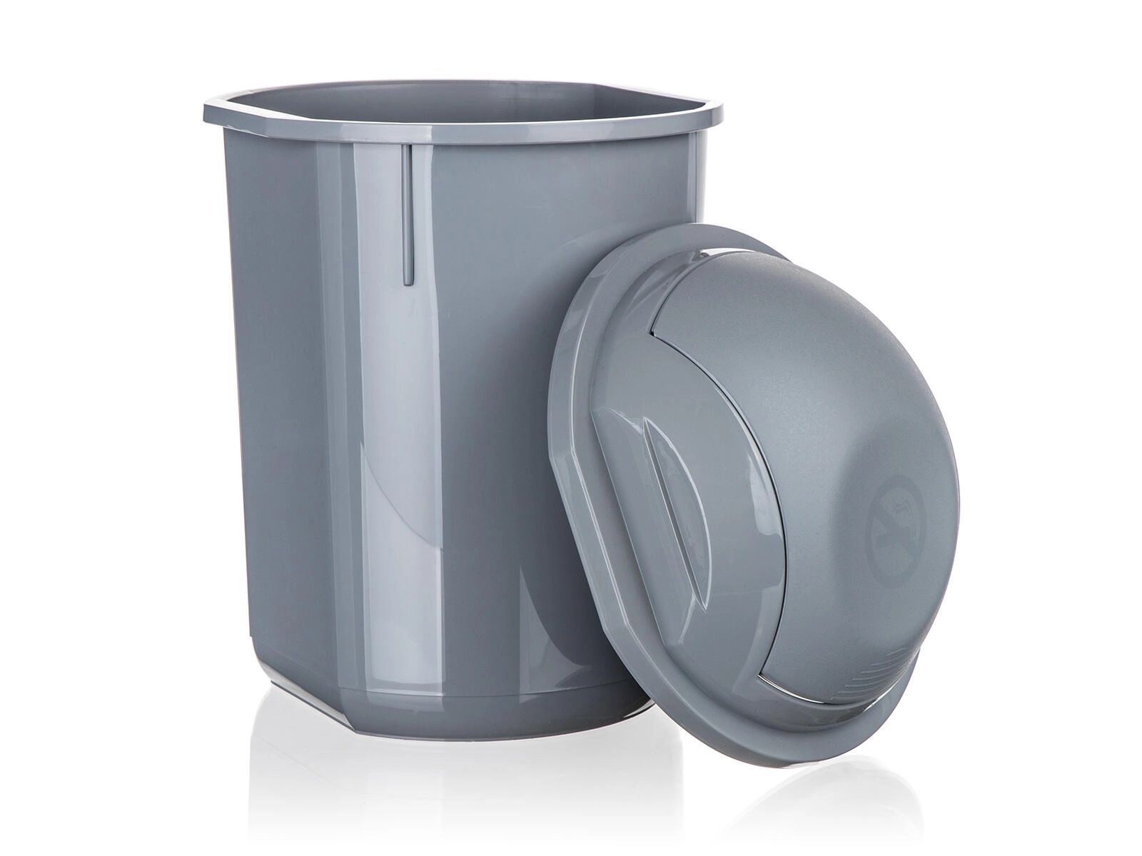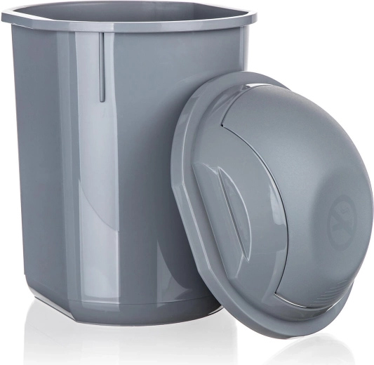 A 22 literes, szürke, kerek szemetes megbízható megoldás a mindennapi használatra otthon és az irodában. A billenő fedélnek köszönhetően a tartalom rejtve marad, a szagok kontroll alatt vannak, miközben a hulladék bedobása gyors és kényelmes.