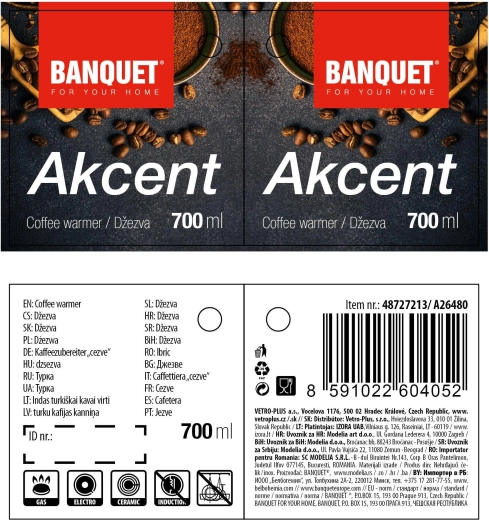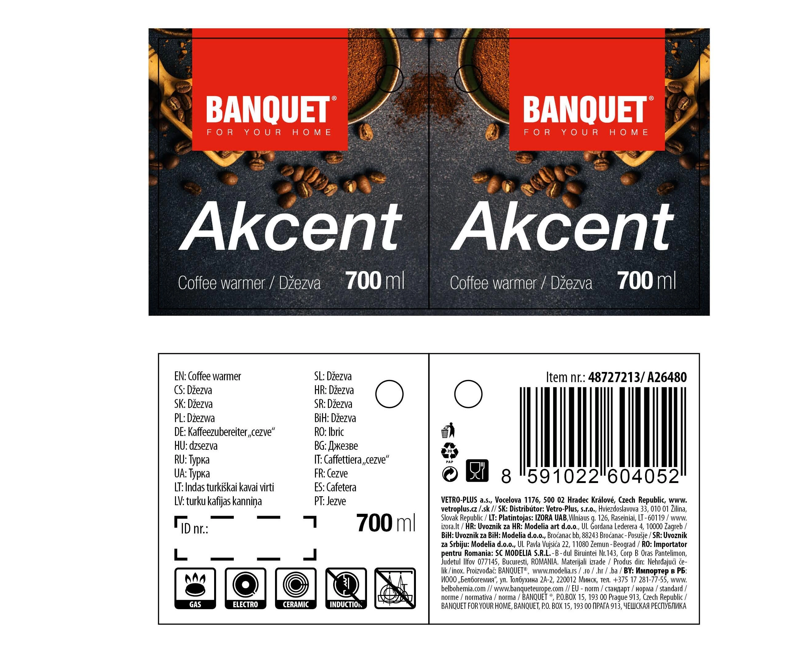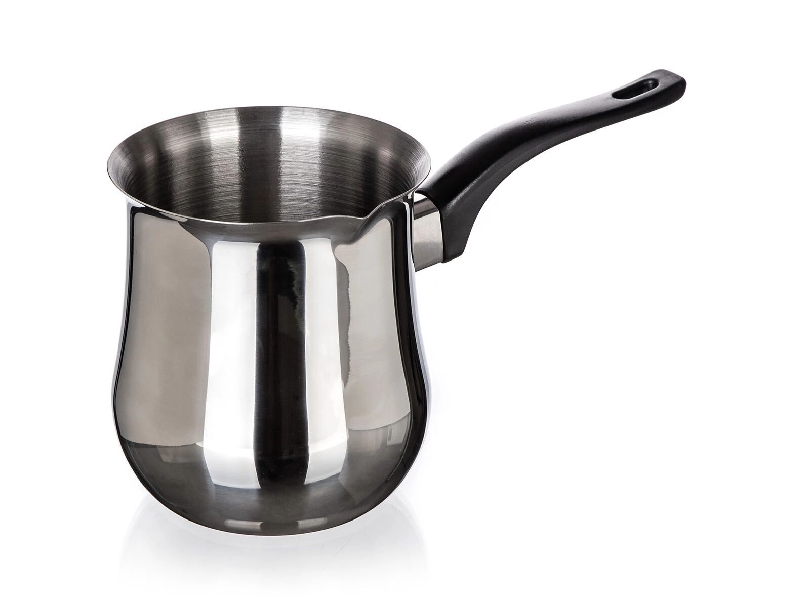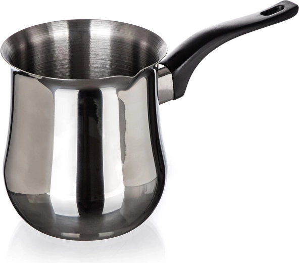 Fedezze fel a hagyományos kávékészítést az elegáns, 700 ml-es AKCENT rozsdamentes acél cezvével. A minőségi rozsdamentes acél kivitelnek köszönhetően igazi török és arab kávét készíthet gazdag aromával és utánozhatatlan ízzel. Az ergonomikus fogantyú és a kiszélesített peremű, praktikus forma biztonságos és kényelmes kiöntést biztosít.