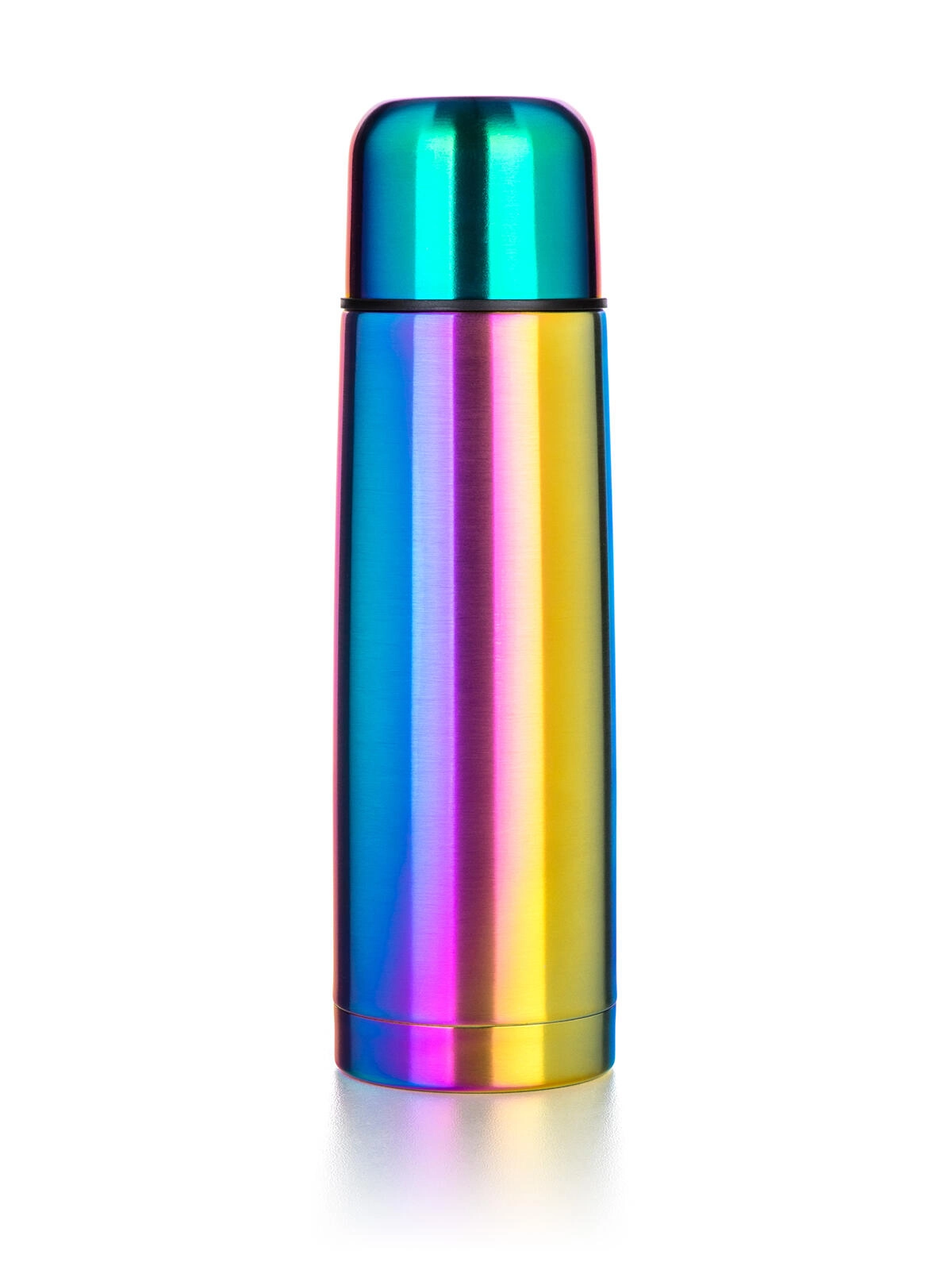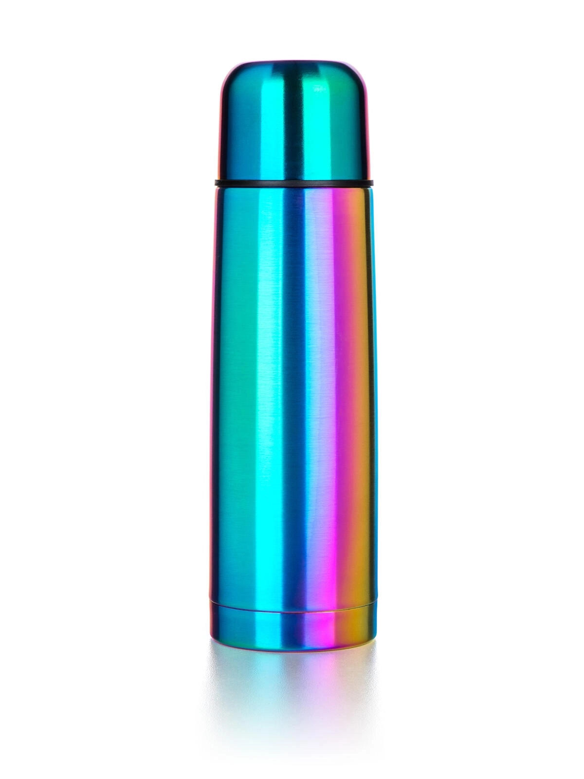 Stílusos, 0,5 l űrtartalmú AVANZA rozsdamentes acél termosz szivárványos matt kivitelben, amely italait hosszan melegen vagy hidegen tartja. A vákuumos, duplafalú szigetelésnek, a rozsdamentes acélból készült ellenálló kivitelnek és a praktikus, nyomásra záródó kupaknak köszönhetően tökéletes utazáshoz, munkába járáshoz és kirándulásokhoz. A tető egyben ivópohárként is szolgál.