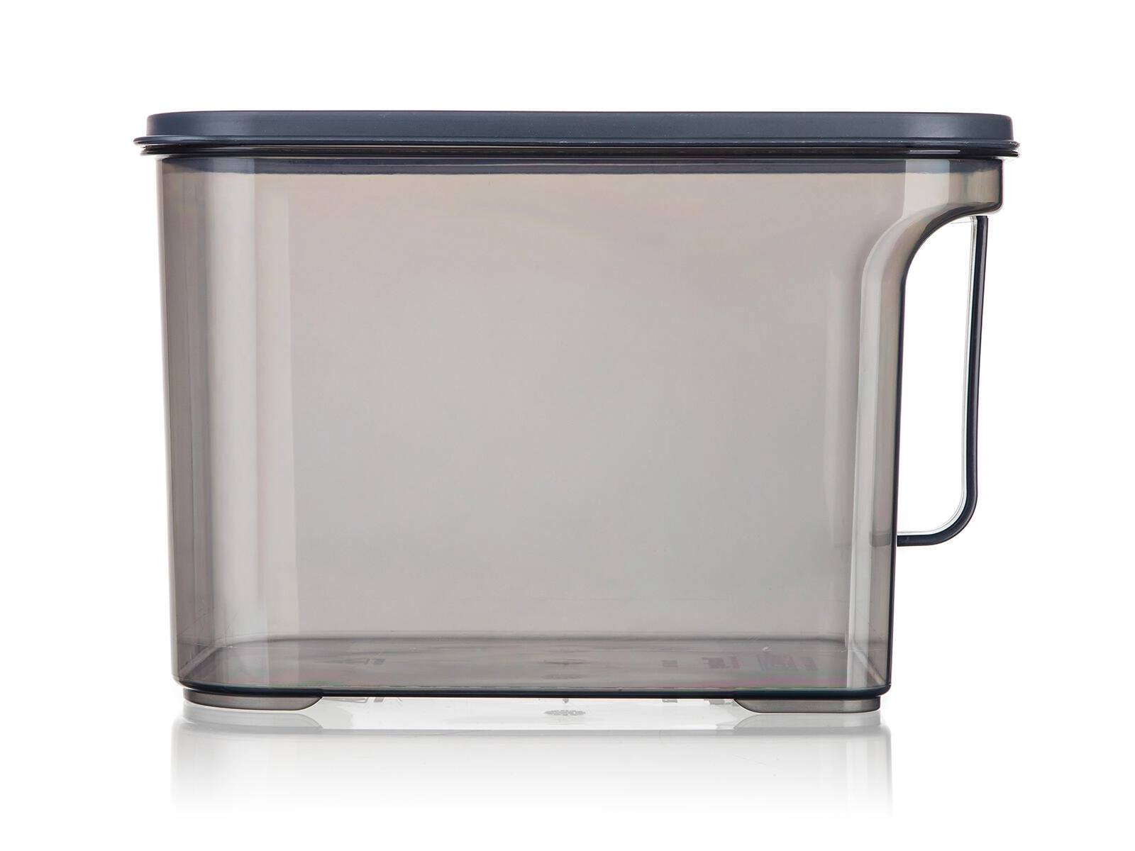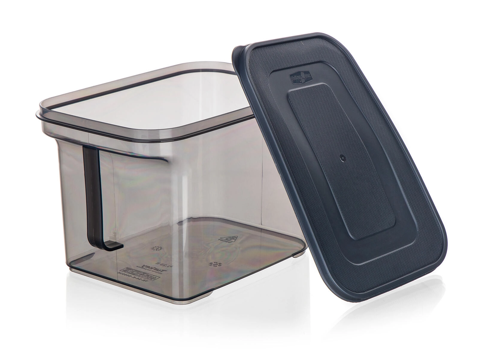 Az integrált fogantyú megkönnyíti a kezelést és a hordozást, legyen szó szemes élelmiszerekről, gabonapelyhekről vagy főzési alapanyagokról. A lapos fedél biztonságos egymásra rakást tesz lehetővé több dobozzal, ezáltal hatékonyan spórol a tárolóhelyen.