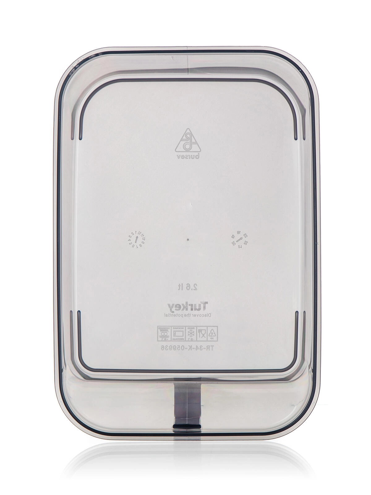 A füstszínű, határozottan pattanó fedél védi a tartalmat a nedvességtől és bent tartja az aromát – ideális szemes és szóródó élelmiszerekhez.