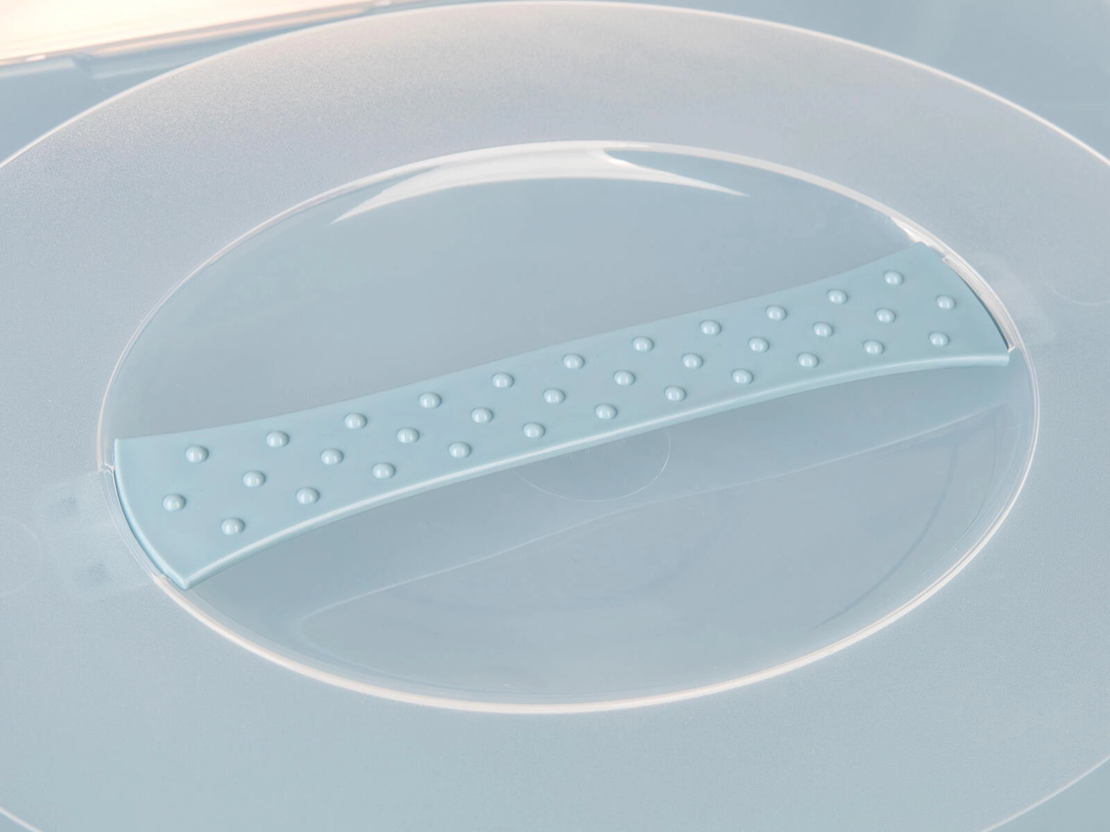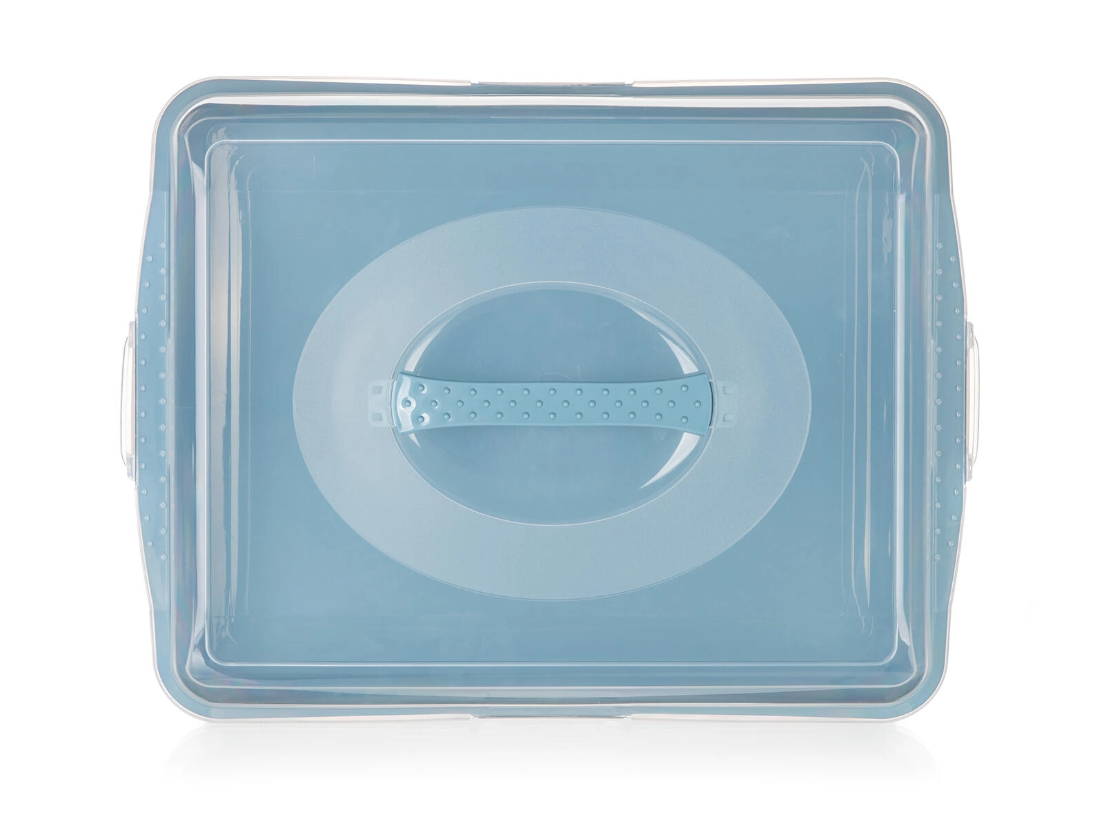 A könnyű, strapabíró műanyag egyszerűen tisztítható, és alkalmas mindennapi konyhai használatra, valamint ünnepségekre vagy piknikekre utazáskor is. Az alacsony profilú kialakítás helyet spórol a hűtőben és a kamrában, emellett lehetővé teszi több tálca egymásra rakását.