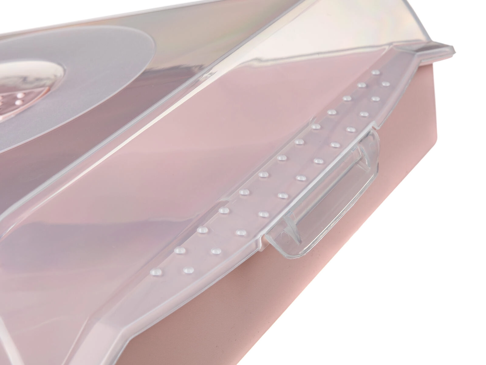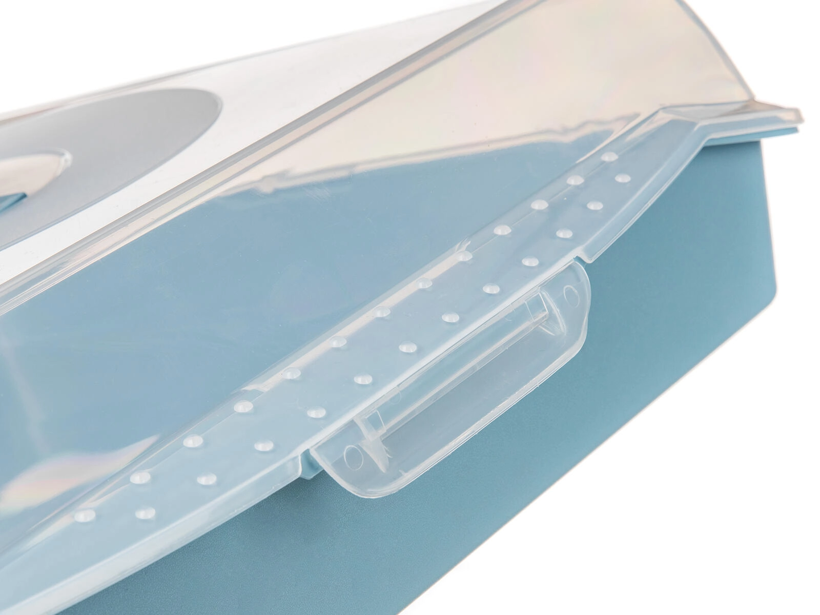 A megbízható oldalsó klipszek szilárdan a helyén tartják a fedelet, így a desszertek szállítás közben nem mozdulnak el, és védve maradnak a portól és a nedvességtől.