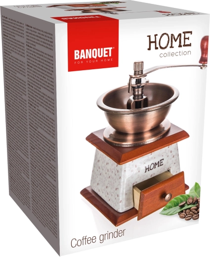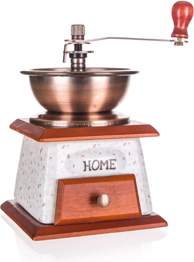 Fedezze fel a becsületes kézi őrlés varázsát a HOME kézi kávédarálóval. A díszített kerámia fa elemekkel és fém tölcsérrel időtálló megjelenést kölcsönöz, amely remekül illik modern és rusztikus enteriőrökbe egyaránt. A kerámia őrlőszerkezet kopásálló, és nem befolyásolja a kávé ízét.