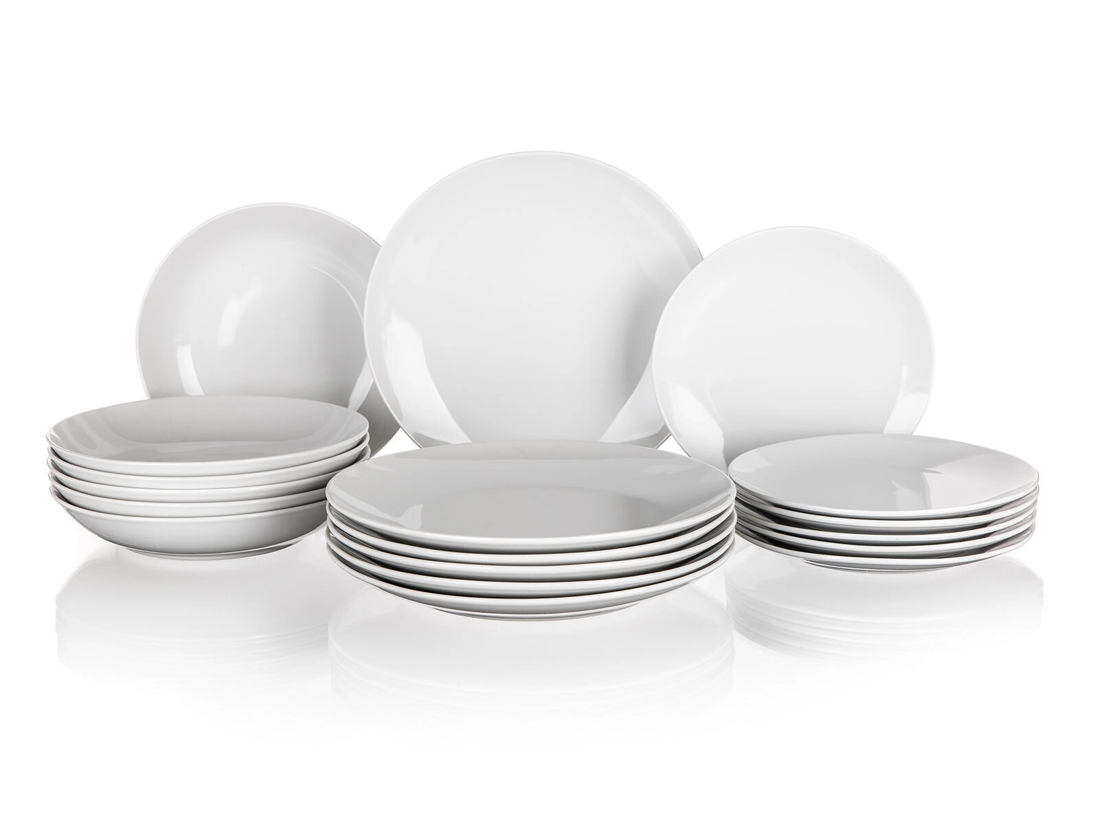 Tartalmaz 19 cm-es desszertes, 21,5 cm-es mély és 24 cm-es lapostányérokat – mindent, ami egy teljes menühöz szükséges.