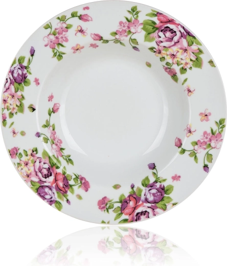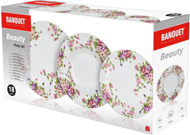 Vigyen finom eleganciát az asztalra a Beauty porcelán készlettel. A visszafogott rózsaszín–lila virágok fehér alapon és a fényes máz egyszerre emelik ki az esztétikumot és a praktikusságot, így a készlet jól illik családi vacsorákhoz, vasárnapi ebédekhez és ünnepi lakomákhoz is.