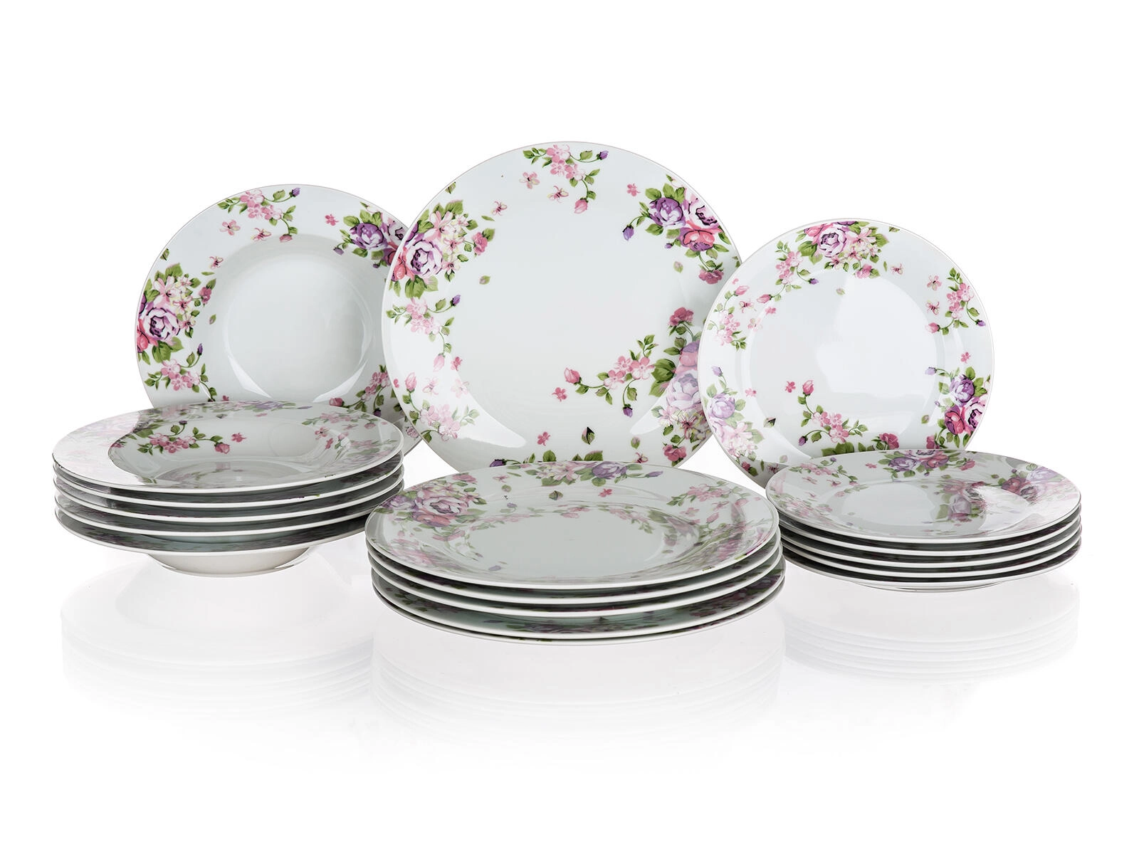 6 desszertes, 6 mély és 6 lapostányért tartalmaz – ideális családi étkezésekhez és vendégfogadáshoz.
