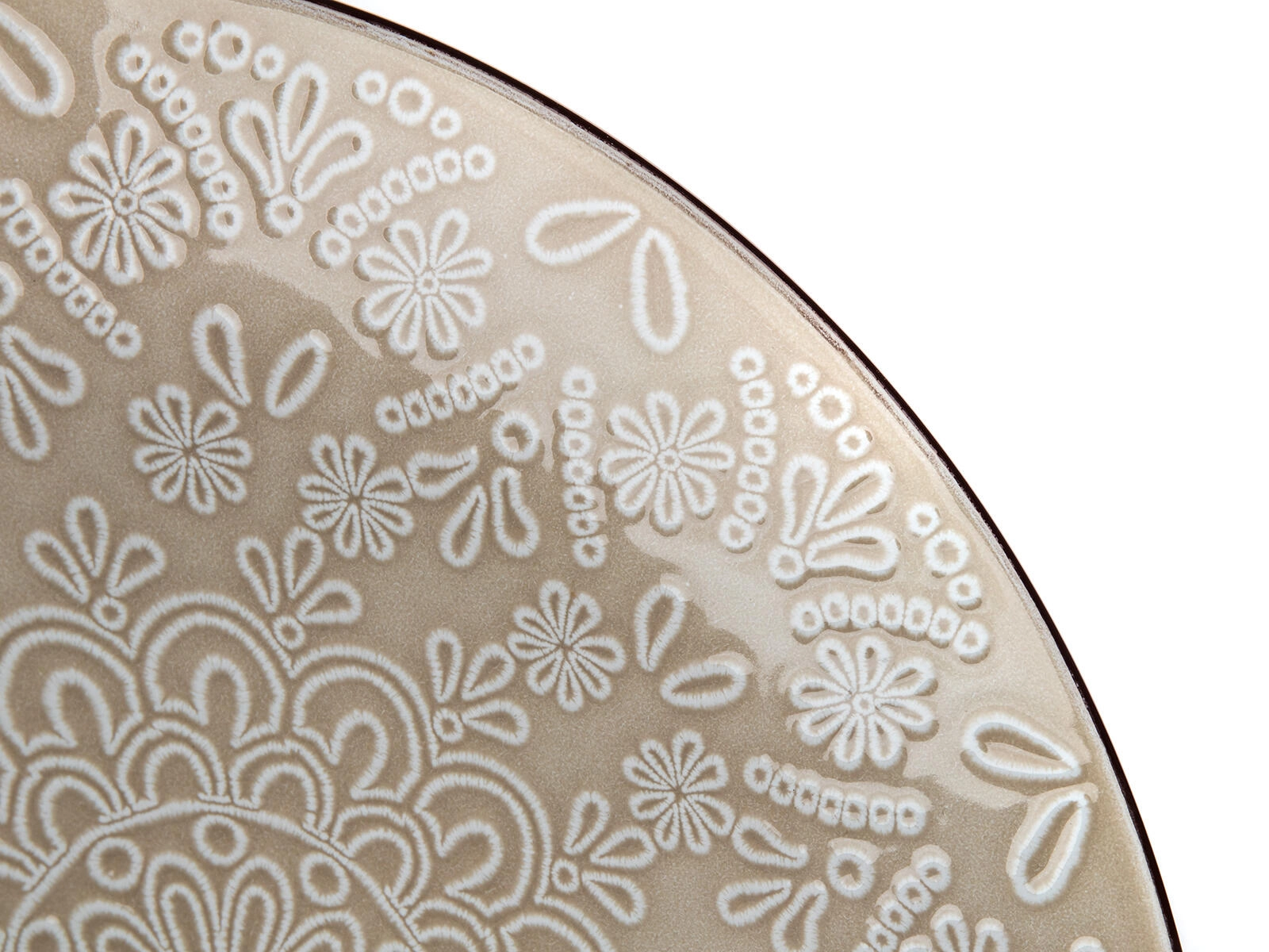 A dombornyomott csipkeminta sötétebb peremmel egyedi karaktert ad a tányérnak, és minden tálalást esztétikai élménnyé varázsol.