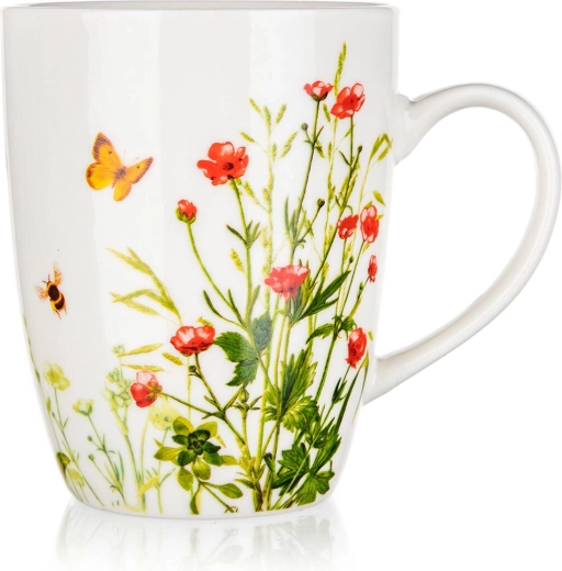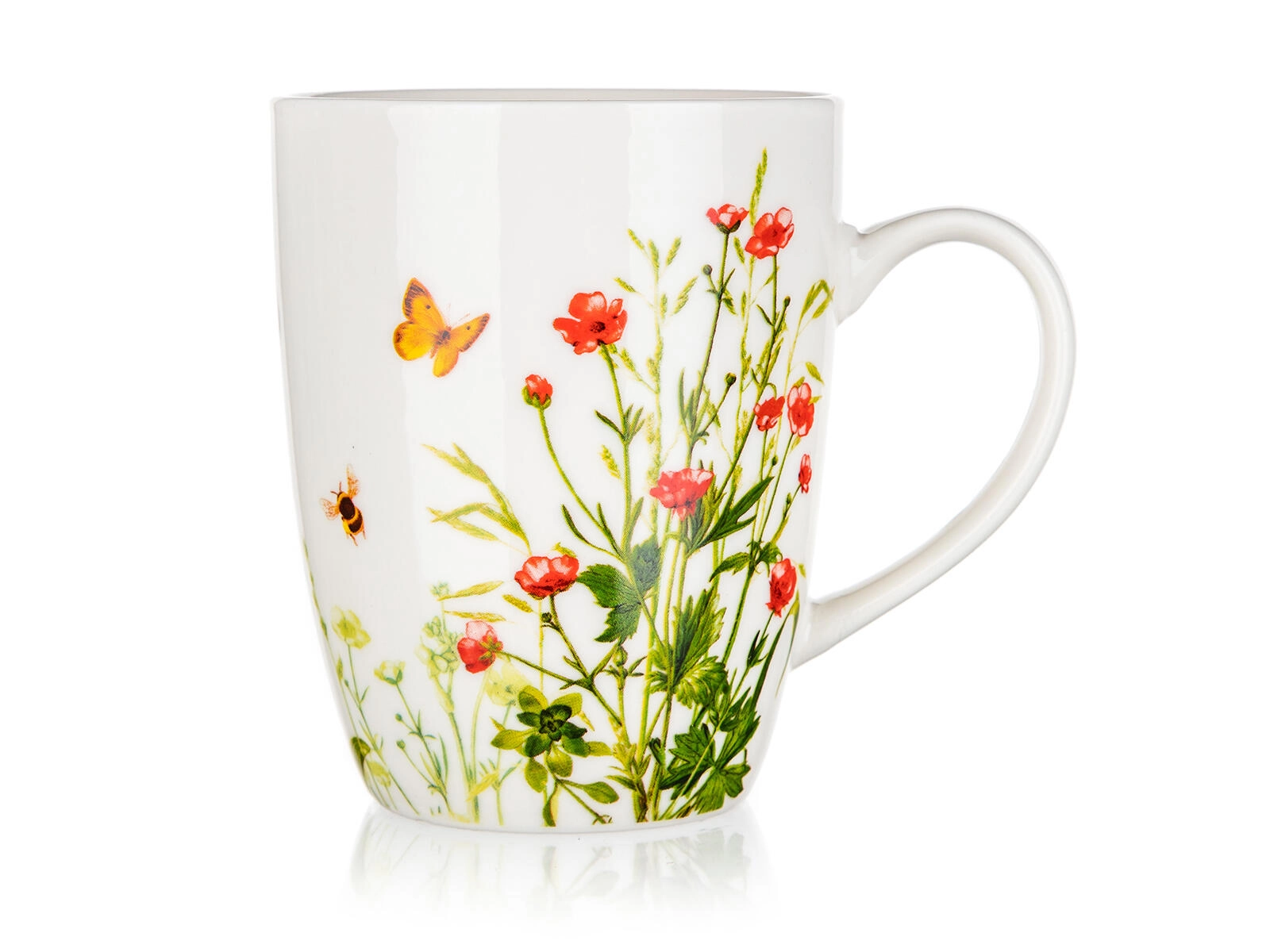 A stílusos Meadow kerámia bögre 300 ml űrtartalommal és finom virágmintával ideális a mindennapi és ünnepi pillanatokhoz. Élvezze meleg és hideg italait, és értékelni fogja könnyű karbantartásátmosogatógépben és mikrohullámú sütőben is használható.