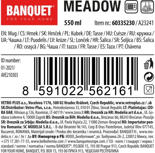 Élvezze kedvenc teáját vagy kávéját a tágas, 550 ml űrtartalmú, természet ihlette MEADOW mintás bögréből. A tartós kerámia bögre fényes mázzal forró és hideg italokhoz egyaránt alkalmas, mosogatógépben mosható és mikrohullámú sütőben is használható. Kényelmes fogású, és díszíti bármelyik asztalt.
