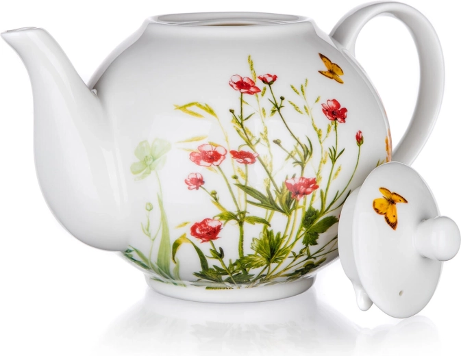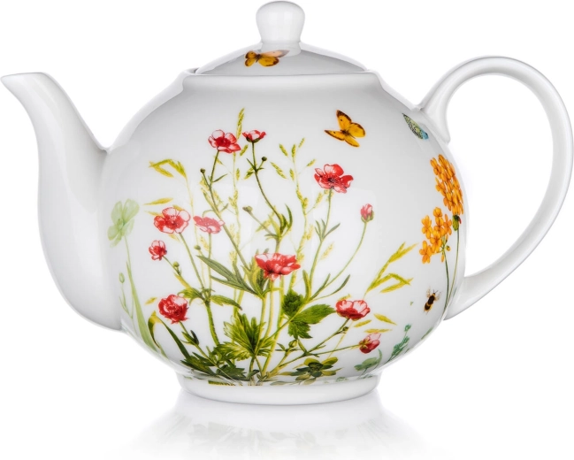 Fedezze fel a tálalás varázsát a Meadow kannával, amely időtlen dizájnt ötvöz a praktikummal. A fehér máz díszítő virágokkal és pillangókkal finom és elegáns hatást kelt, így a kanna egyaránt illik a reggeli kávéhoz és a délutáni teához barátokkal.