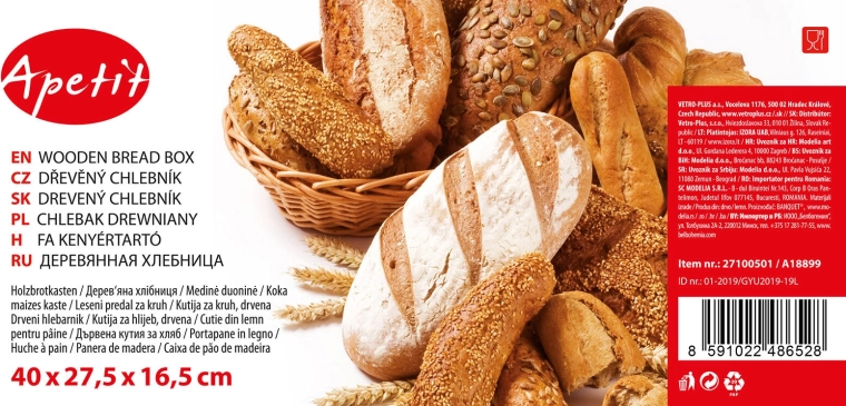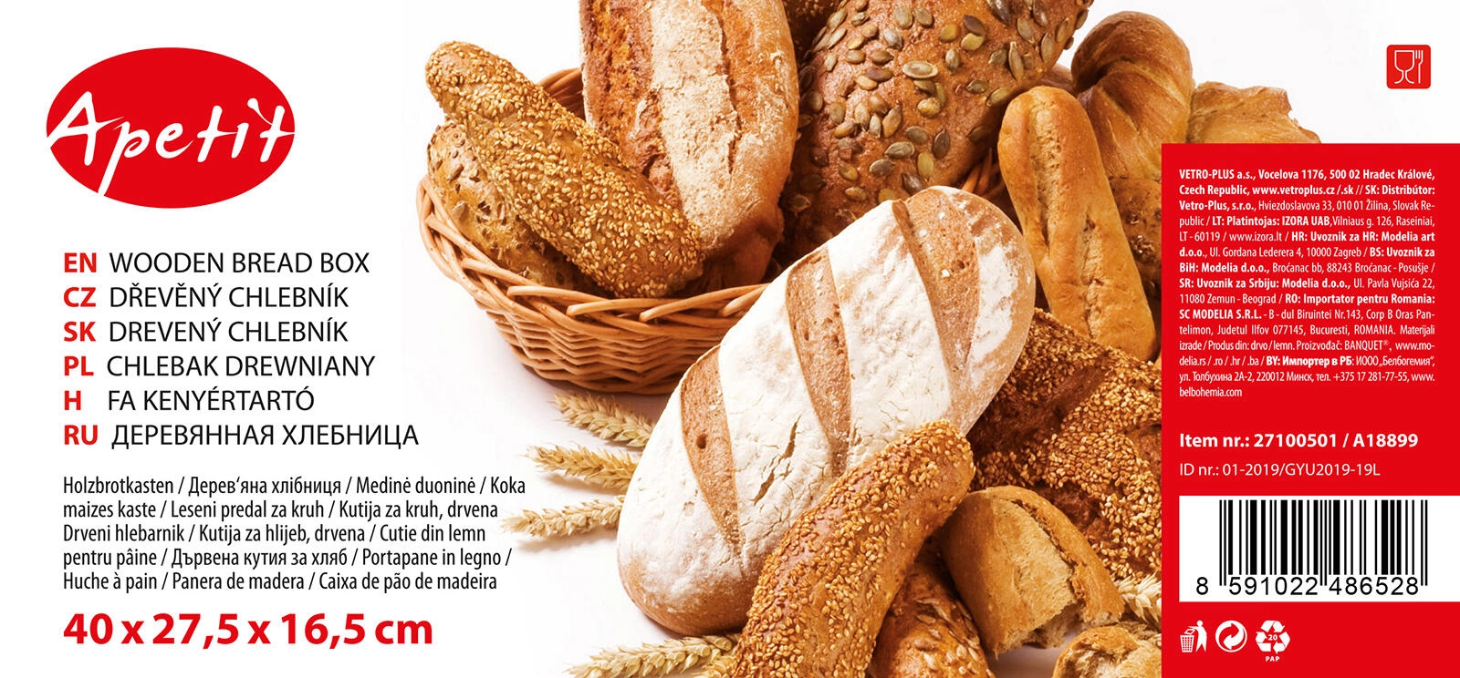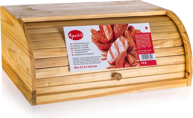 Nagylelkű 40 × 27,5 × 16,5 cm-es méretei elegendő helyet biztosítanak a mindennapi pékáru-készlethez. A fa természetes módon szabályozza a páratartalmat, ezáltal segít megelőzni a penészedést és a felesleges kiszáradást.