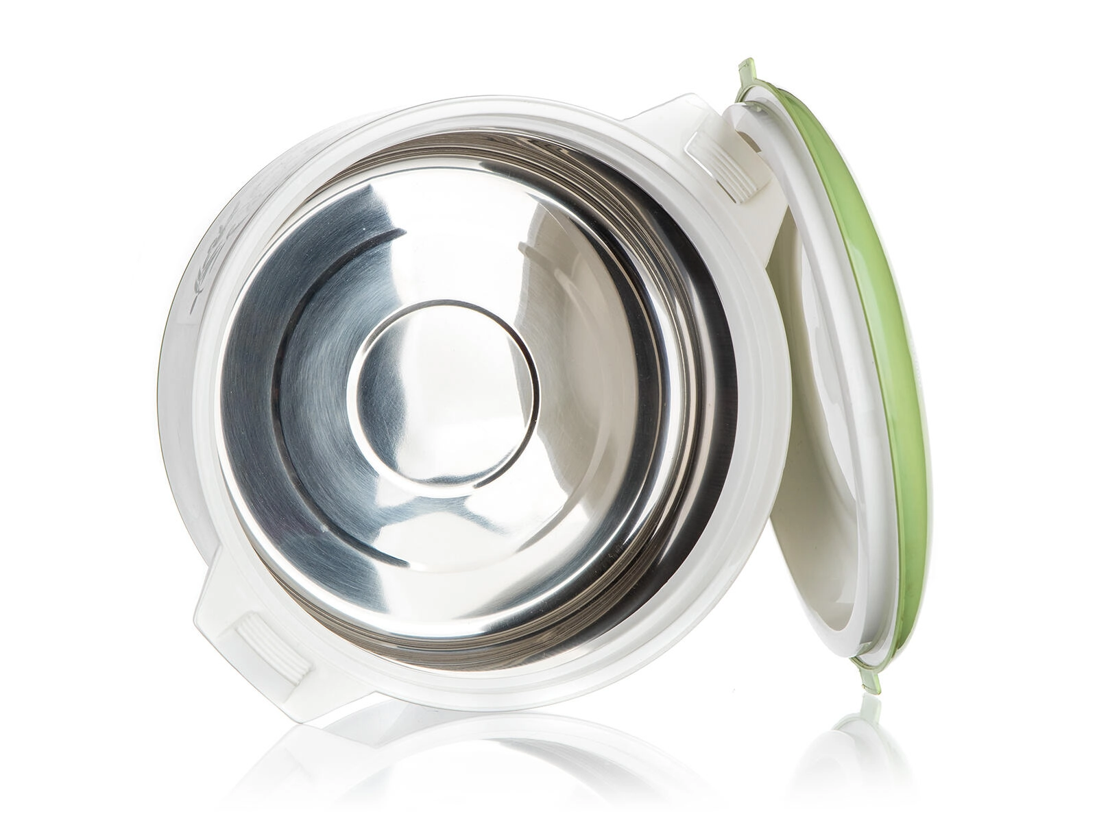 A masszív fedélnek és a oldalsó fogantyúknak köszönhetően a termos tál könnyen hordozható és biztonságosan kezelhető. Hasznos családi ebédeknél, piknikeken, grillezésnél és a készételek tálalásakor, mielőtt az asztalra kerülnek.