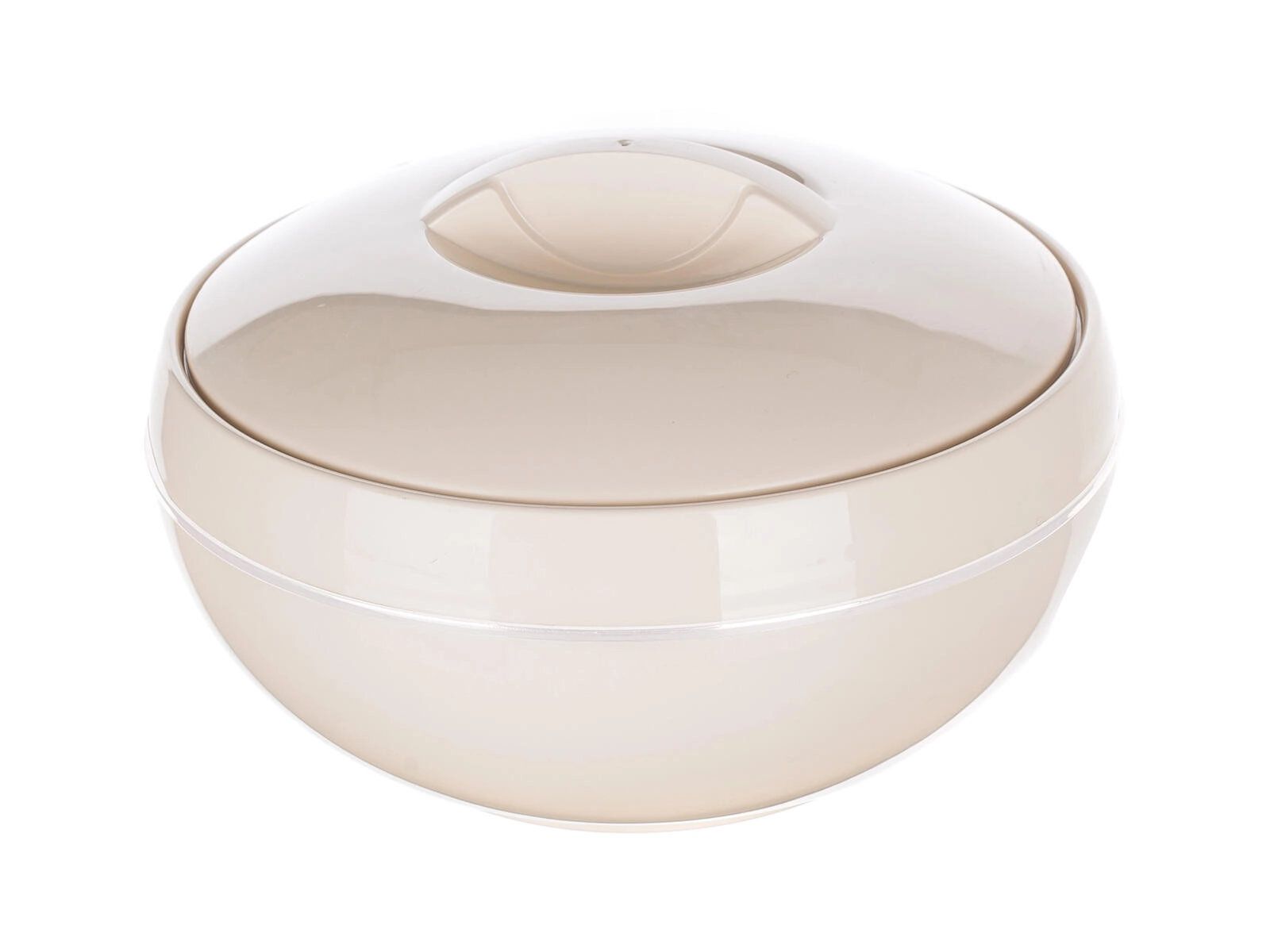 A könnyű és tartós, bézs színű műanyag köpeny egyszerűen tisztán tartható, a fogantyús fedél kényelmes nyitást és zárást biztosít. A tál remek választás levesekhez, köretekhez és mártásokhoz családi ebédeken, grillezéseken vagy pikniken.