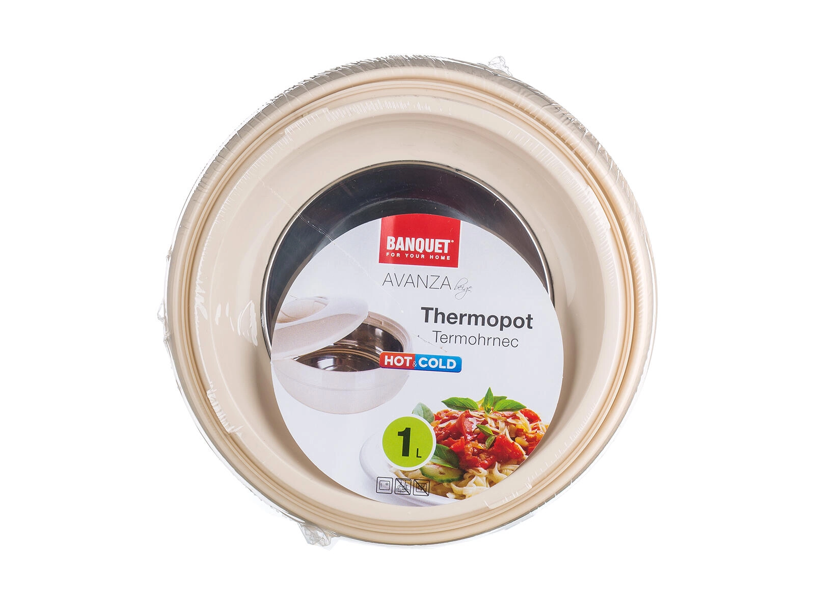 Praktikus fedeles termos tál AVANZA 1 l űrtartalommal, amely hosszabb ideig melegen vagy hidegen tartja az ételeket. Rozsdamentes acél betétet kombinál PUR habszigeteléssel és tartós műanyag külsővel elegáns bézs színben – ideális tálaláshoz és ételek szállításához is.