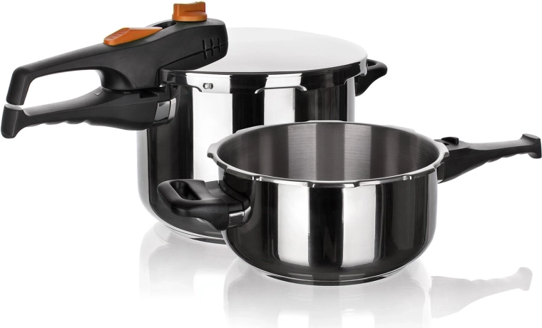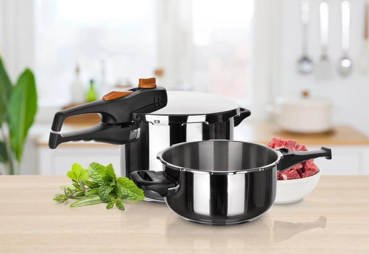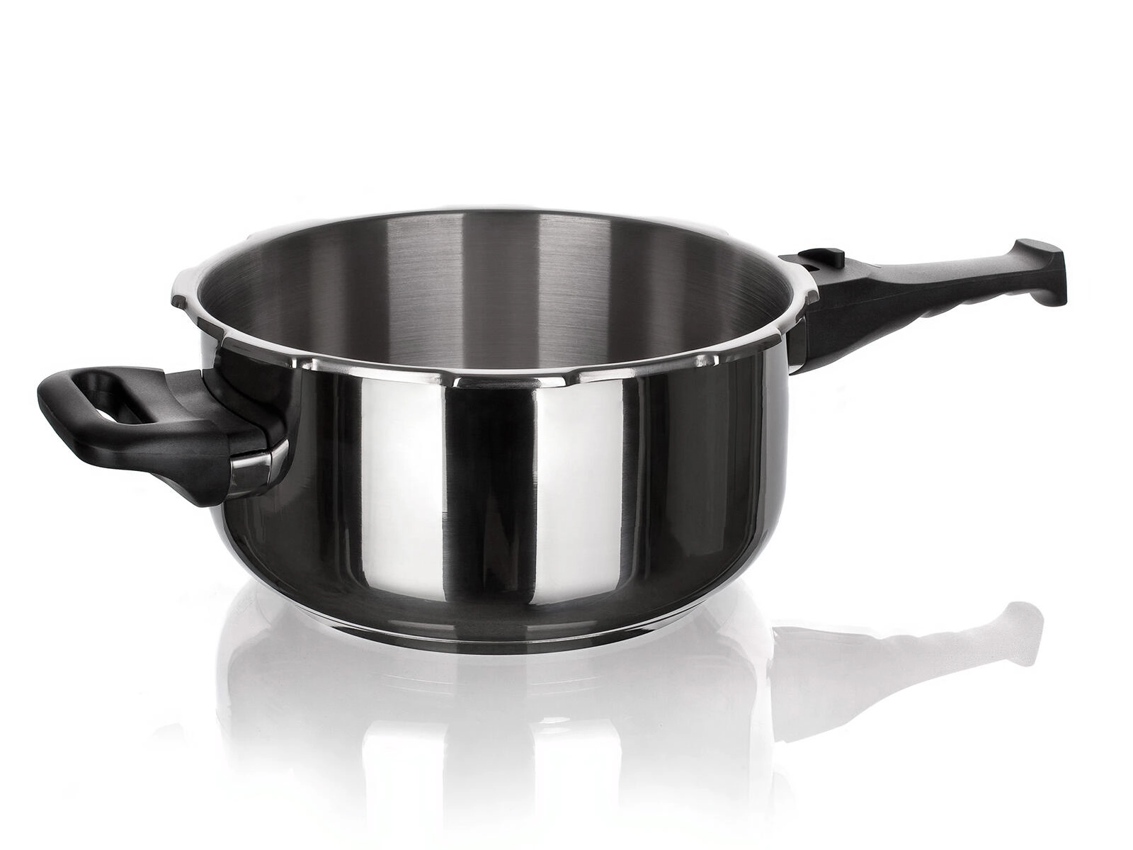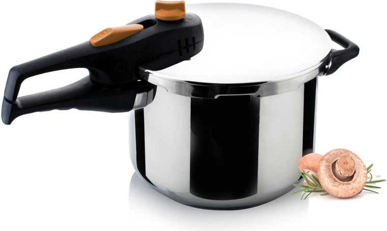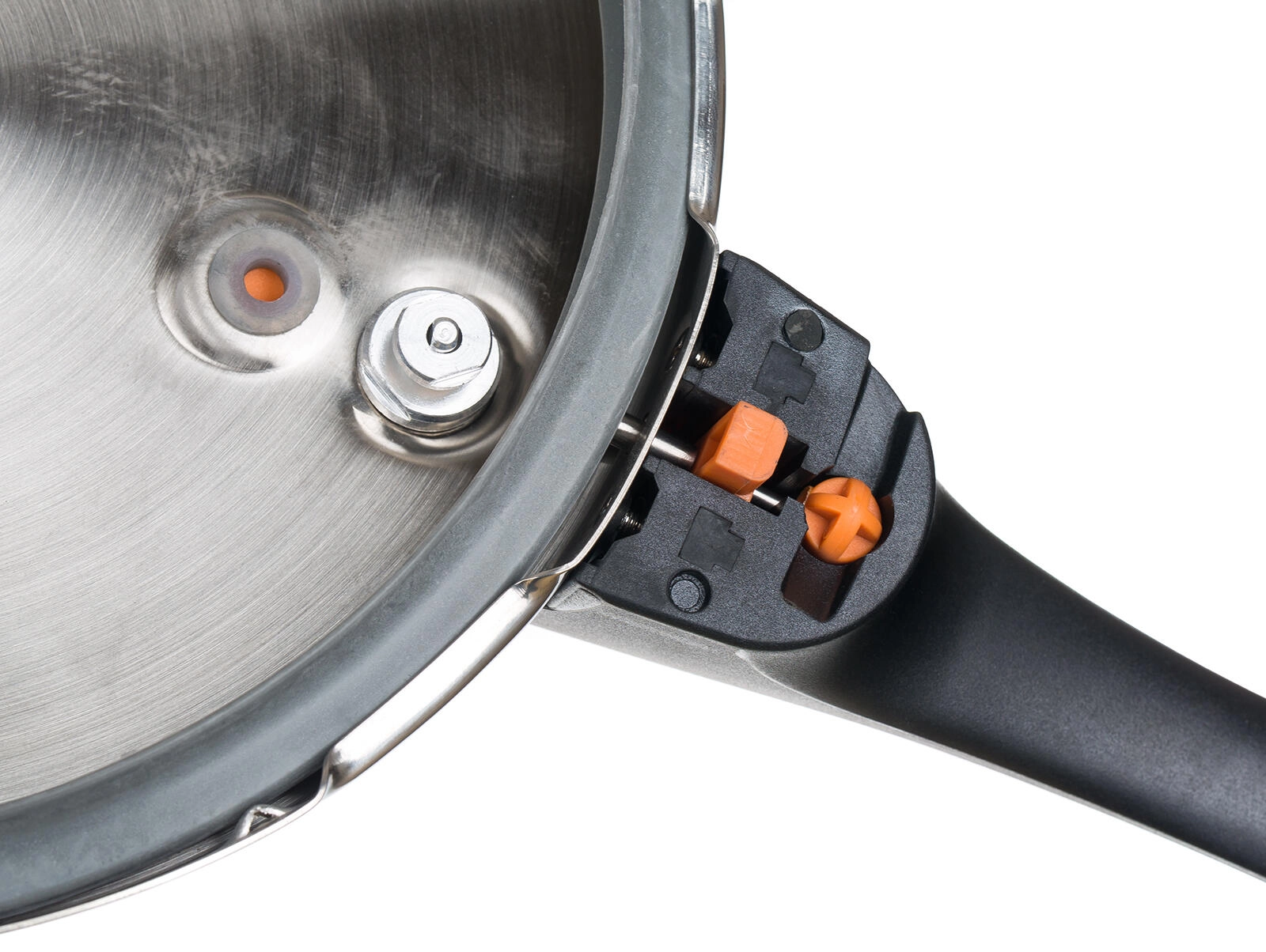 A precíz munkaszelep és a bajonettes zárás mellett nyitásgátló biztosíték a nyomás alatt lévő edényhez, valamint szilikon tömítés gondoskodik a megbízható zárásról. A két nyomásfokozat 0,6 / 0,9 bar akár jelentősen felgyorsítja a főzést, miközben megőrzi az alapanyagok szaftosságát. Az egyszerű karbantartás, a strapabíró kivitel és a jól látható maximális töltési jelzések megkönnyítik a mindennapi főzést.