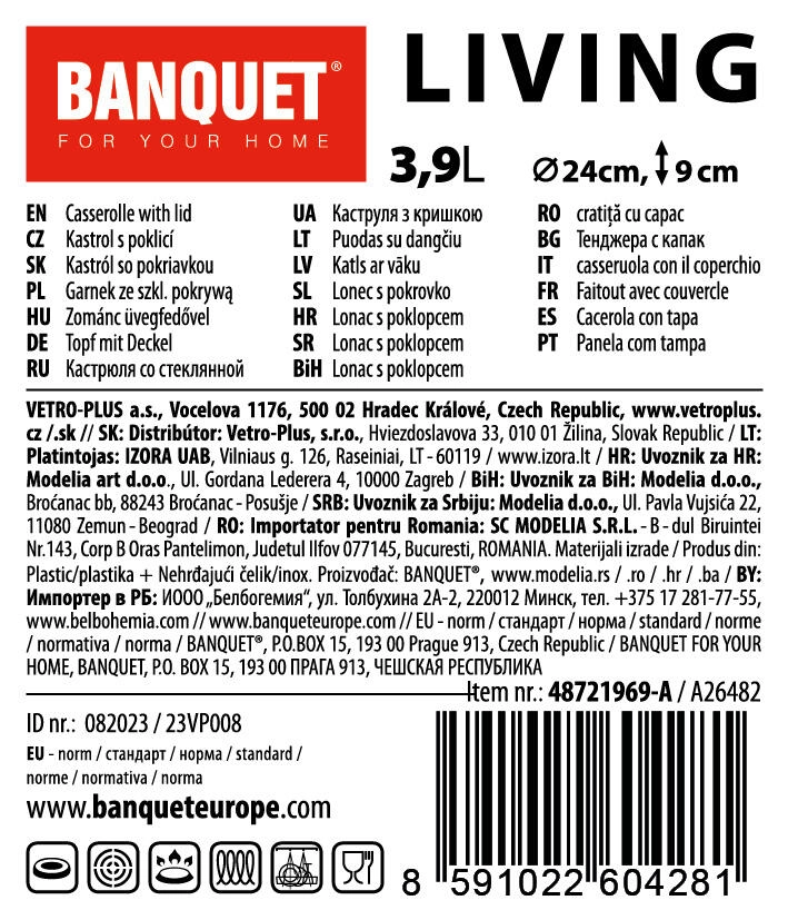 A LIVING rozsdamentes lábas 3,9 l űrtartalommal univerzális választás minden konyhába. Az üveg fedőnek köszönhetően a főzési folyamatot mindig szemmel tarthatja, a rozsdamentes acél kivitel pedig hosszú élettartamot és könnyű karbantartást biztosít. A fényes felület dekoratív, matt csíkokkal elegáns megjelenést kölcsönöz konyhájának.
